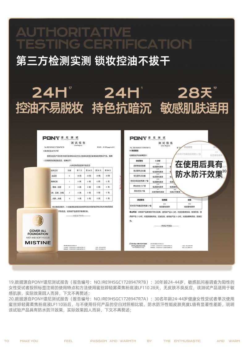蜜丝婷轻雾柔焦金盾粉底液适合油皮LF110白皙中调色