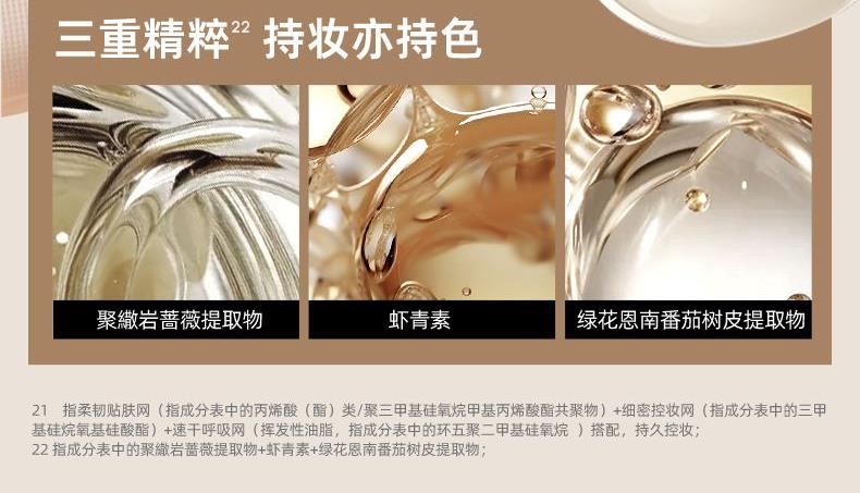 1. 锁妆升级 24h超强控妆 粉体控油+源头抑脂,双重复配控油粉体(球形粉体:细胞级维稳精粹 +板状白玉晶:更均匀服帖,持妆有光泽);德之馨研发抑油因子,直击源头控油,底妆控油更持久。 2.滤镜光影遮瑕,遮瑕不厚重,磨皮更自然。 3. 四重抗氧成分(聚散岩蔷薇、虾青素、肌肽、蝶豆花)、抗氧加持,底妆全天鲜活 4. 维稳养护(深海蓝藻蛋白维稳修护+三生花保湿植萃),油痘油敏皆可,不伤肤不致痘不闷痘