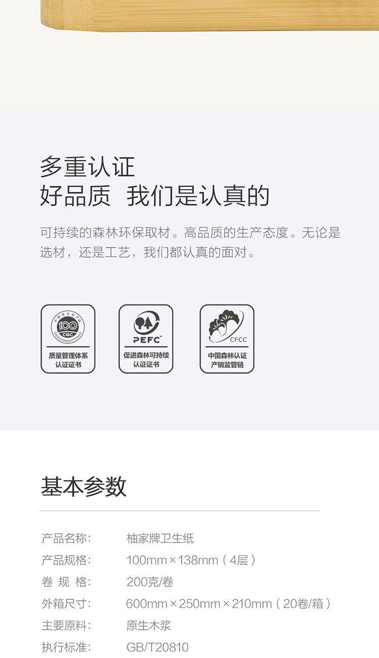 产品货号:7284 纸面规格:100*138mm(4层/节) 外箱尺寸:600*250*210mm(200g/卷) 主要原料:原生木浆 保 质 期:3年