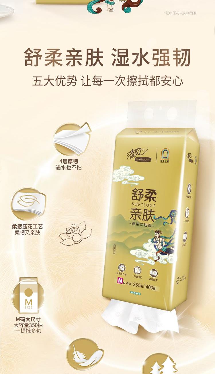 清风纸巾A敦煌IP款悬挂式抽纸4层350抽*1提