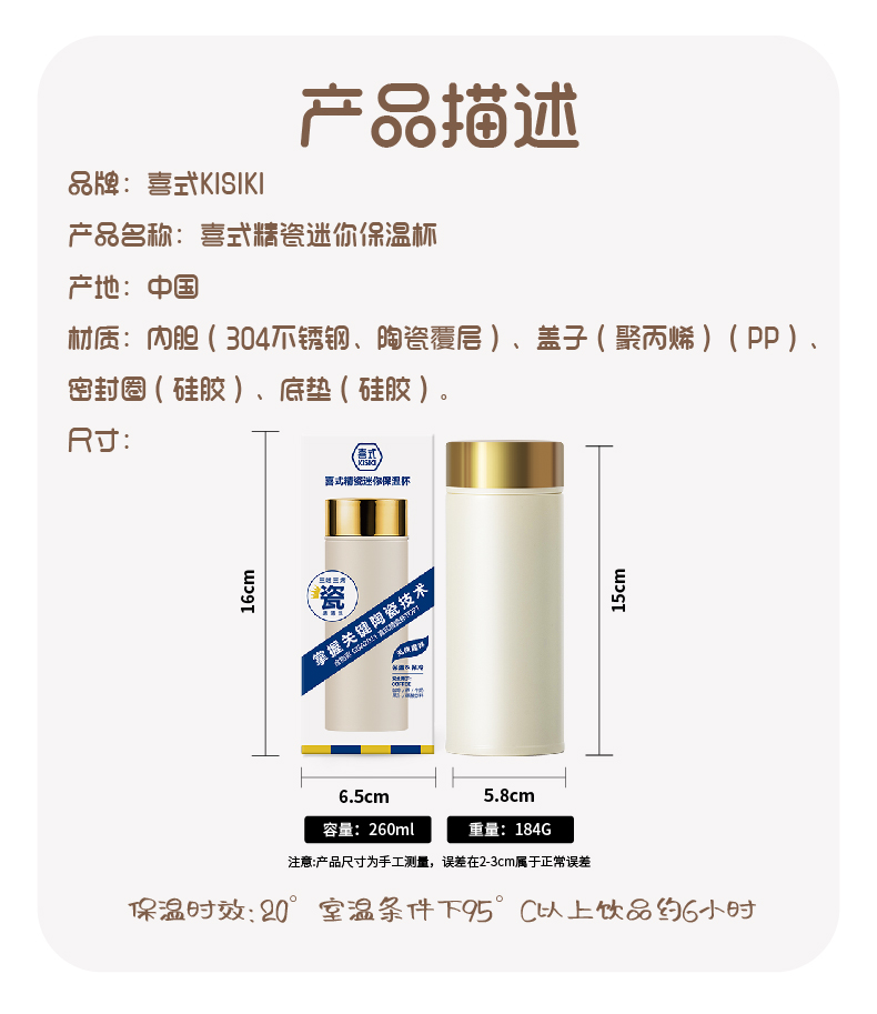 喜式瓷内胆迷你保温杯B99樱桃惜福