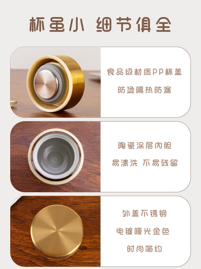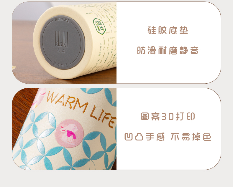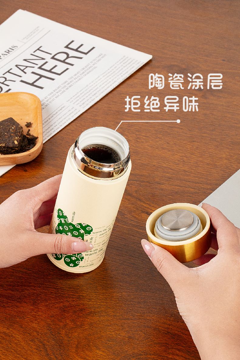1.黑科技陶瓷内胆:无金属异味 保温 锁鲜 耐酸碱,冷热酸甜都不惧怕 2.百搭魔法杯:咖啡、红茶、果汁、牛奶、都可泡 3.瓷内胆,不易留茶垢,方便清洗更省心 4.使用新型3D喷墨印刷技术,展现凹凸立体质感,将颜色和细微图案一层一层精心的重叠,再现图案的触感 5.硅胶杯垫,既防滑耐磨又静音,有效保护杯底,车载不怕洒水