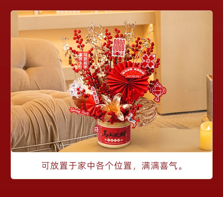 马年春节年宵花冬青红果摆件送客户客厅装饰礼品F128A0