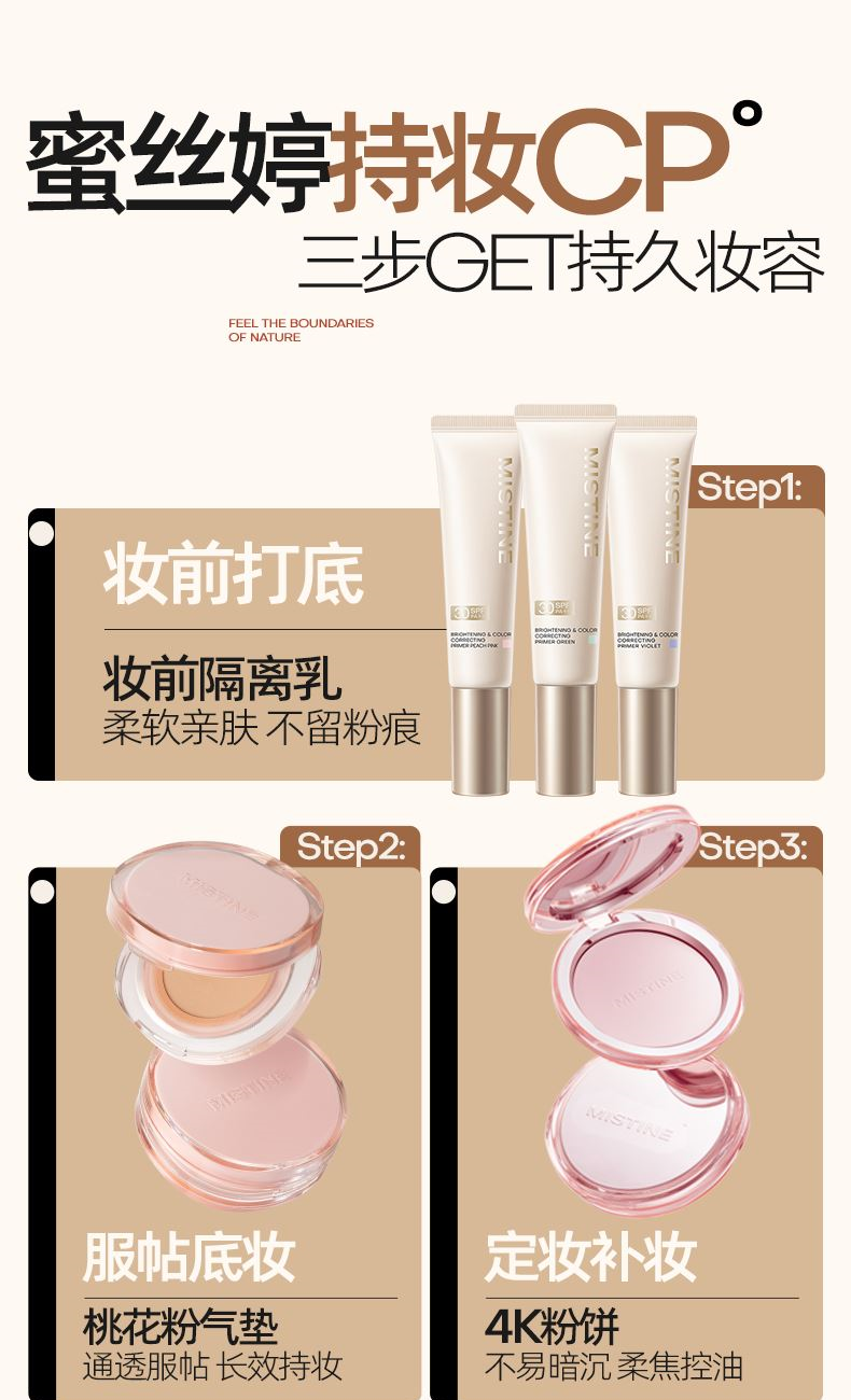 1.一抹新鲜净透,即刻透亮氧气妆 ①添加高折光率油脂与合成氟金云母,打造双重光感肌肤;②四大抗氧养肤成分添加:抗氧提亮,呈现原生好皮(虾青素+麦角硫因+仙桃仙人掌提取物+生育酚乙酸酯) 2.层层叠妆0粉感,清爽服帖不粘 薄纱般轻盈质地,清爽服润不粘腻,层层叠妆无粉感、不卡粉。 ①植物氨基酸涂层技术,强服帖力,轻薄底妆;②板状粉体技术,贴肤且持妆;③色粉分散处理技术,细腻度UP 3.盛含75%*精华,持续水感润妆 添加两大植物萃取成分,精华级润养,从内而外水润不拔干。 ①有机成分:红毛丹果皮提取物,增加肌肤含水量,有效保湿 ②甘油葡糖苷,强大保湿力且不粘腻,增强皮肤水合,防止水分流失*75%精华含量包含保湿剂、皮肤调理剂,溶剂。