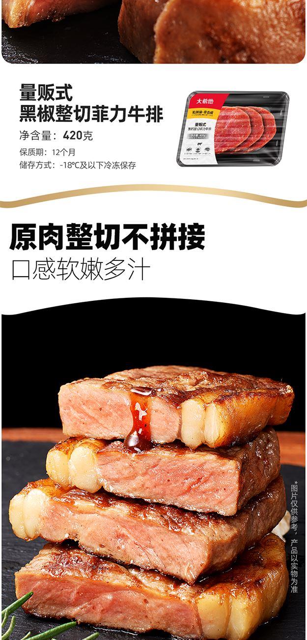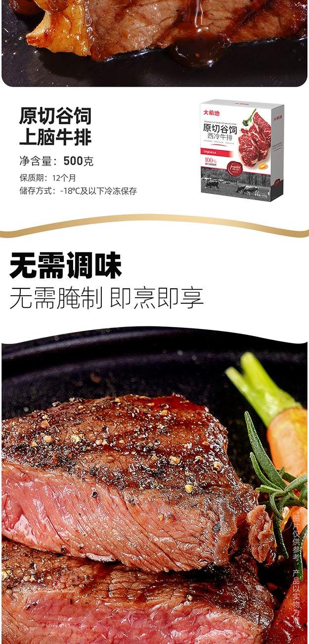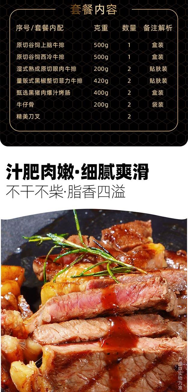DXDSW-07 大希地商务礼999型 "大希地原切谷饲上脑牛排500g*1 大希地原切谷饲西冷牛排500g*1 大希地湿式熟成原切眼肉牛排200g*2 大希地量贩式黑椒整切菲力牛排420g*2 大希地甄选黑猪肉爆汁烤肠400g*2 大希地牛仔骨200g*2 精美刀叉一副 精美刀叉一副"