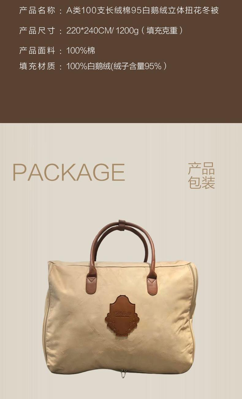 博洋A类100支长绒棉95白鹅绒立体扭花冬被