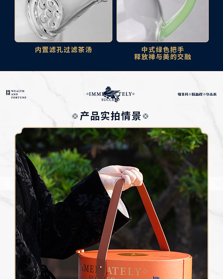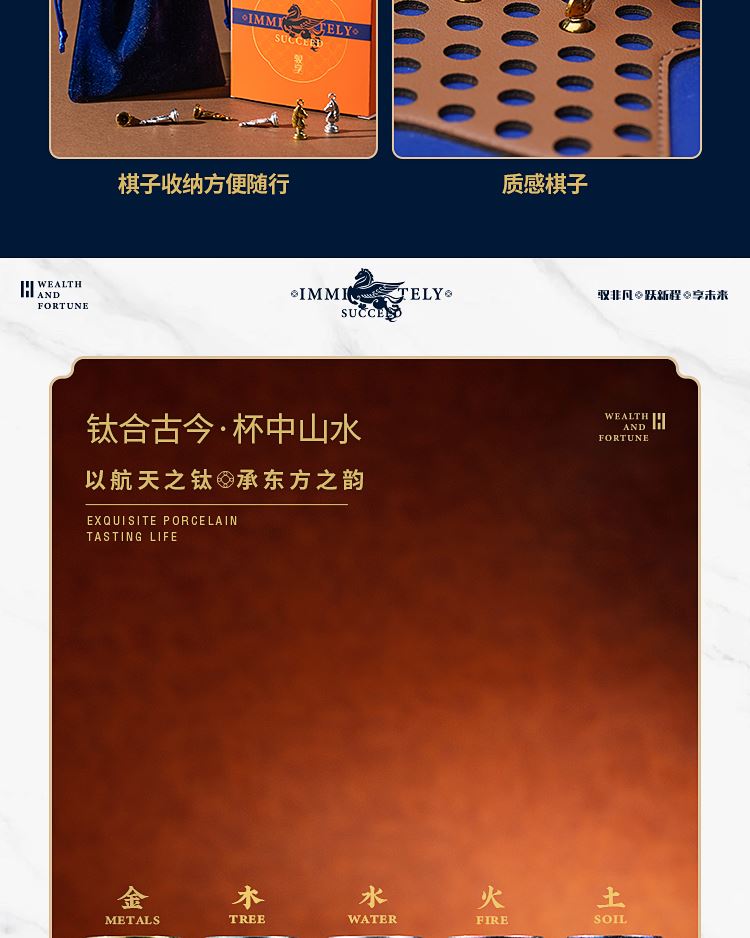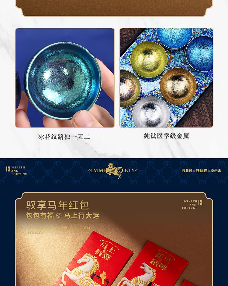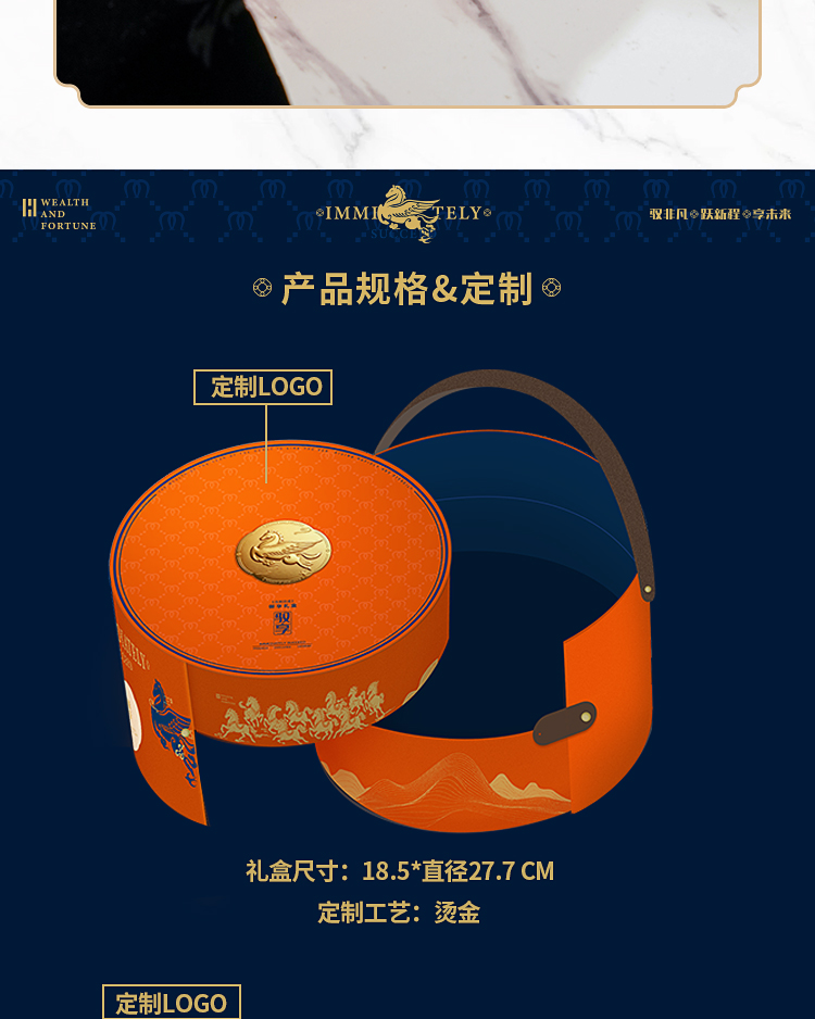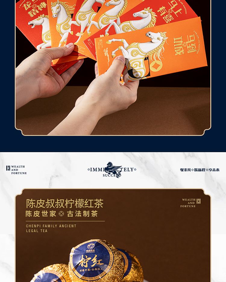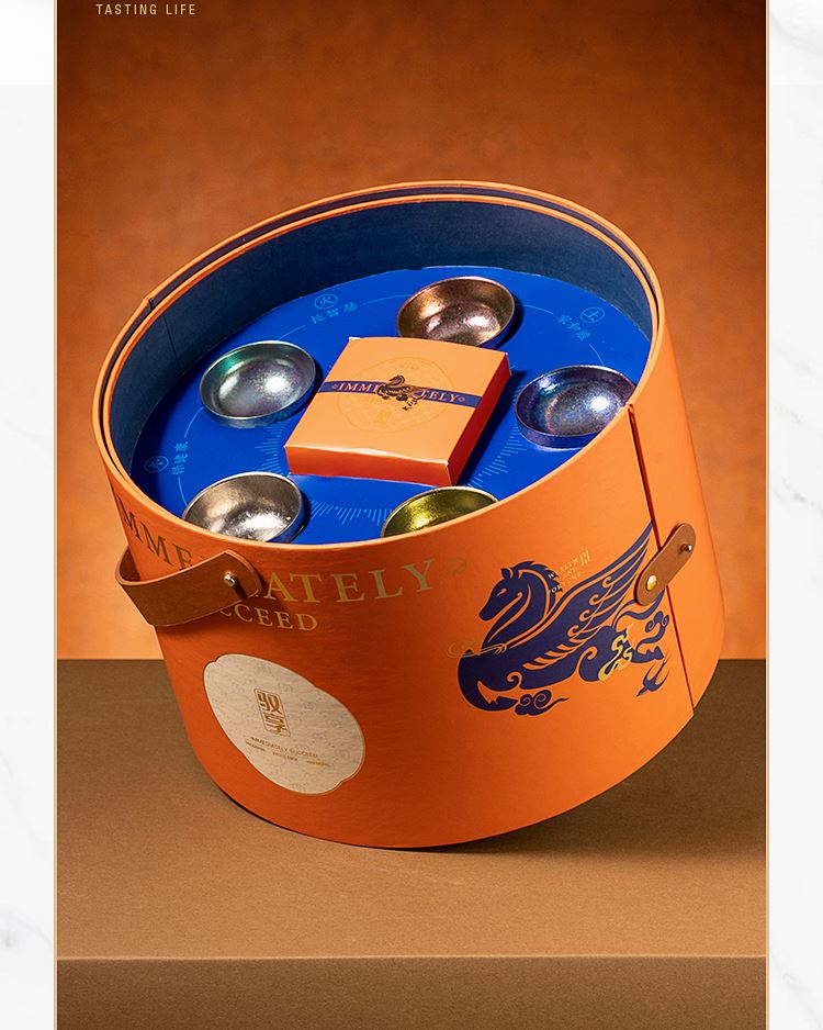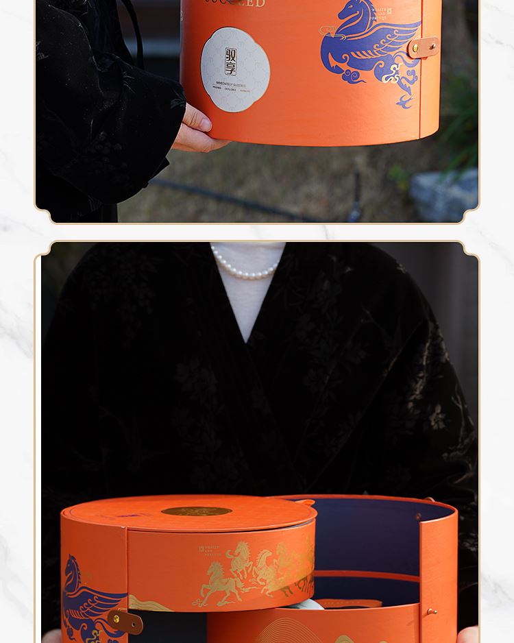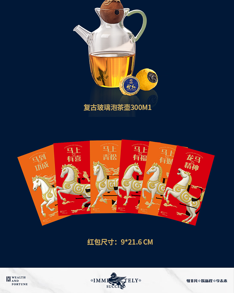 礼品配置清单: 双层主题礼盒、团圆皮革棋盘、马头棋子、五行钛杯*5、柠檬红茶*6、复古玻璃泡茶壶、新年红包*6、