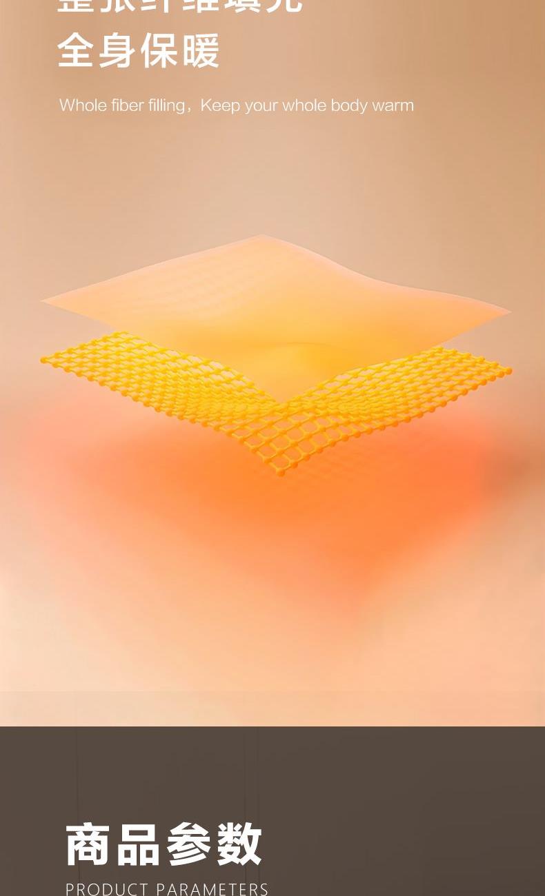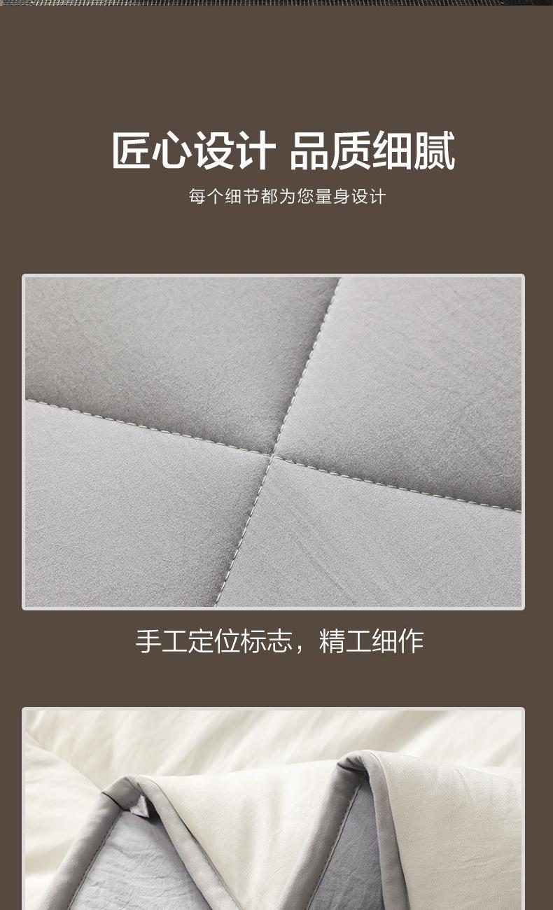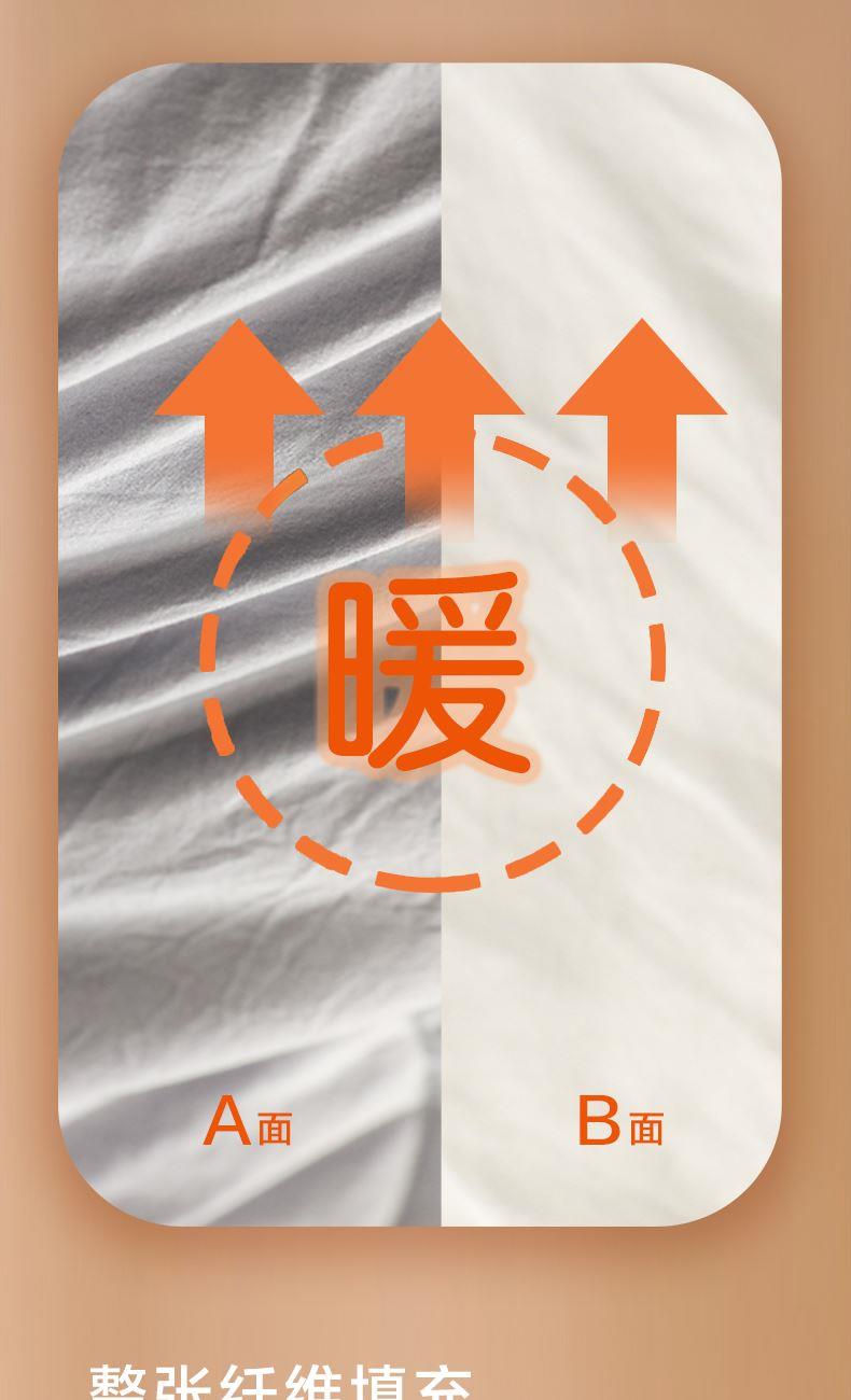 产品规格:200*230cm/2000g(填充克重) 产品材质:聚酯纤维 产品填充:聚酯纤维 1、简约绗缝,固定填充,不易跑绒。触感爽滑,轻盈不压身。 2、AB版撞色设计,双面均可用,升级为成人A类面料,睡眠更安心 3、优质面料,亲肤柔软,紧密圆角包边设计,让被子更耐磨防滑,延长使用寿命。天然健康享受自然的馈赠。