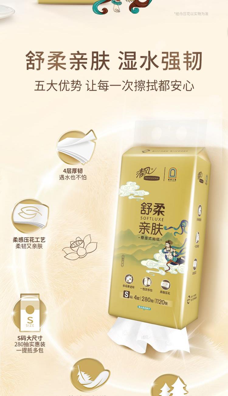 清风敦煌IP款悬挂式抽纸4层280抽/提*6提/箱 清风敦煌IP款悬挂式抽纸4层280抽/提*6提/箱