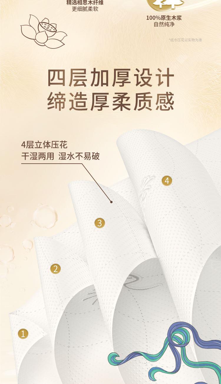 香型:无香 主要原料:原生木浆 保质期:3年 细腻好纸,7年相思木,1张细腻纸。 1.原生木浆 使用原生种植林原木生产的木浆,从源头保证绿色健康品项。全程严控更放心,不添加可迁移性荧光增白剂。 2.四层厚实,蓬松舒软 原生木浆好木出好纸,纸感细腻,棉柔亲肤。 3.湿水依旧强韧 湿水不易破,吸水力UP,多场景安心使用。 4.纤维交织紧密 长短纤维交织工艺,黄金配比,成就柔韧细腻,不掉屑、不分层,自然亲肤,品质呵护。 清风 隶属于金光集团APP,实力拥有“林浆纸一体”产业链,“种6棵,用1棵”,在国内自有林场地面积超过27万公顷,碳储量4239万吨。