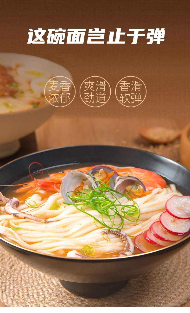产品规格: 宽面 400g*8包 1、42%高加水:口感更爽滑软弹 2、360°真空揉:更筋道耐煮 3、35℃仿日晒:面条品质更稳定 4、宽条形,面身顺滑,咀嚼口感软糯Q弹