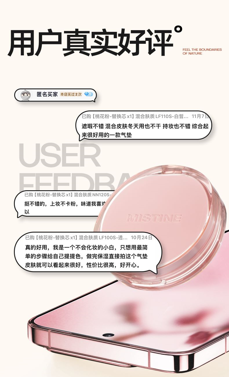 蜜丝婷雾光精华气垫粉霜NN120S适合混合肤质(豹豹限定) 礼品已成功加入PPT!