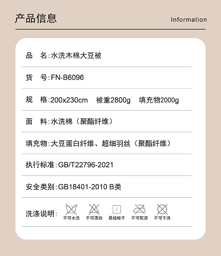 芳恩FN-B6096水洗木棉大豆被200x230cm
