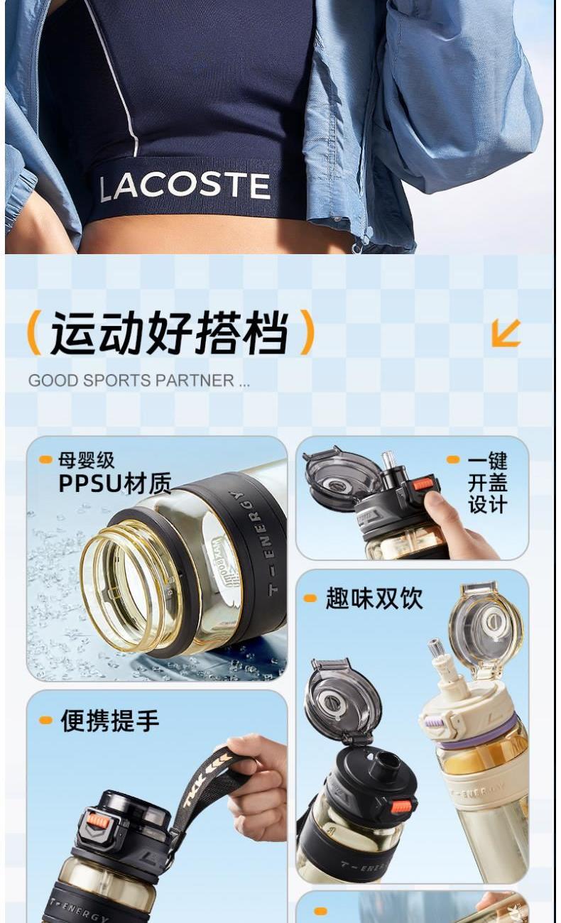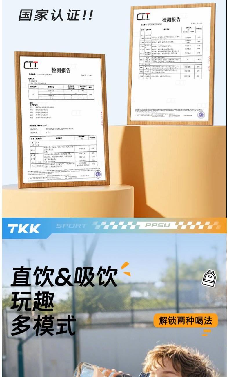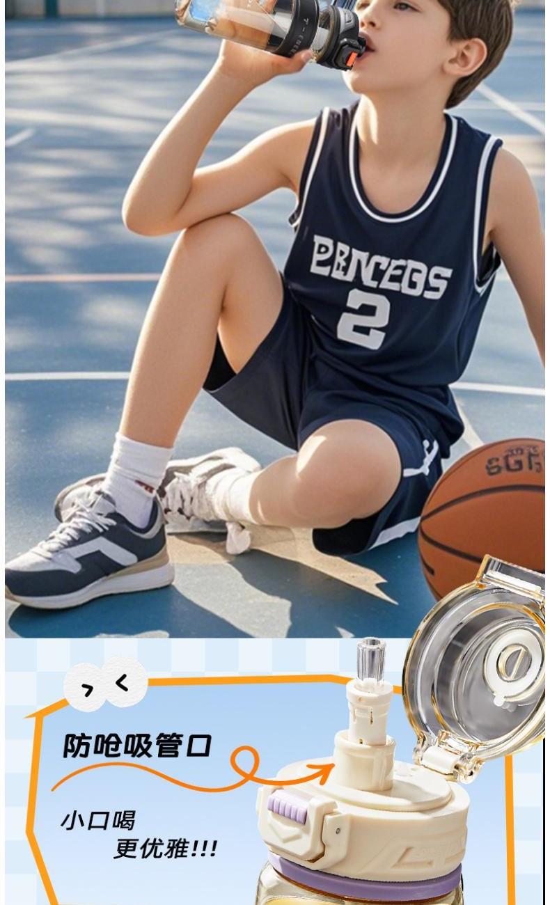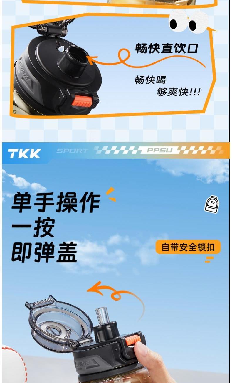 商品容量:620mL 杯身材质:PPSU 商品净重:198g 商品尺寸:9X7.3X22.1CM 1、德国巴斯夫(ppsu)公司直供母婴级材质,加厚杯身,180°耐高温,硅胶杯套不烫手,放心饮用 。 2、 可水煮消毒,可紫外线消毒,杯身可微波炉加热水。 3、 多种防漏设计,精密密封圈,倒置不漏。 4、 一杯双饮,单手开盖无压力,不易呛口,够喝一整天。 5、 安全锁扣,按压上翻开盖,可固定翻盖。 6、便携式加宽提绳设计,方便出行。 7、不藏污纳垢,容易清洗。 8、 时尚运动配色设计,耐看。 9、 静音放置,耐磨杯底座,防滑工艺耐磨抗摔。