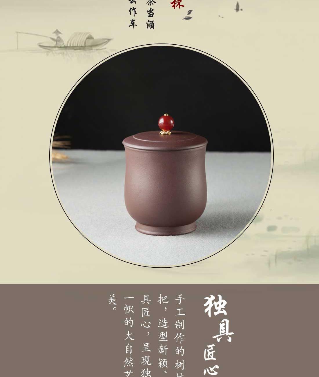 材 质:紫泥 容 量:紫砂杯270ml 包装尺寸:L18.5 W15.5 H11cm 配 置:两件式紫砂茶杯一套,含提手锦盒包装。 1.手把造型灵感源自树枝,独特而自然,仿佛能触摸到山林间的质朴与灵动,为您的品茶时光增添一抹独树一帜的大自然艺术气息。 2.盖粒采用经典的红金配色,热烈的红与奢华的金相互碰撞,打破紫砂一贯的质朴印象,尽显格调。 3.270毫升容量颠覆传统个人杯,满足现泡现喝的科学理念,无论是忙碌的工作间隙,还是惬意的休闲时光,都能尽情享受一杯好茶带来的愉悦。