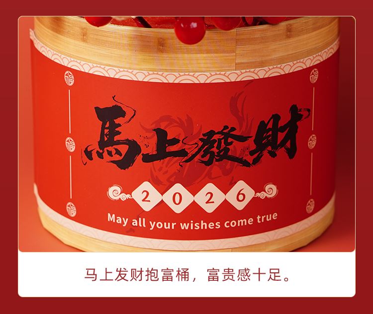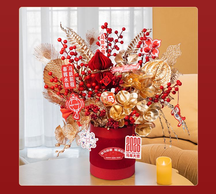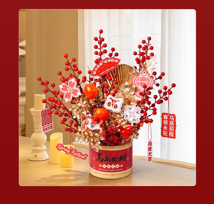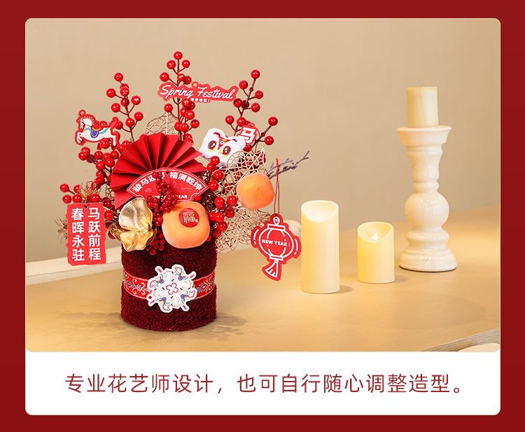 春节客厅装饰摆件送客户年宵花福桶发财果成品F126A0