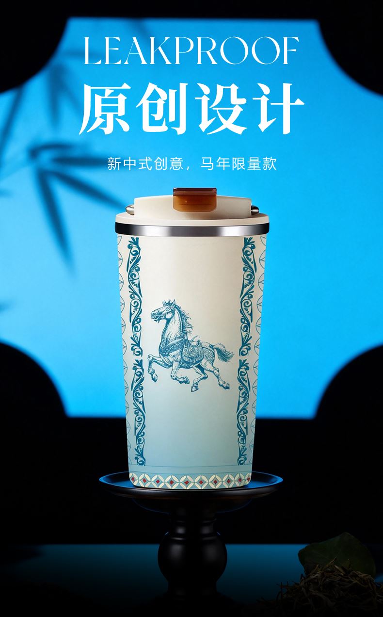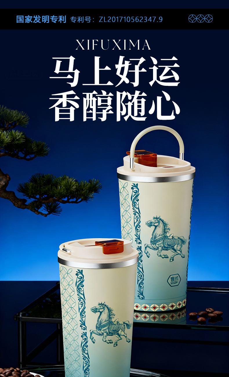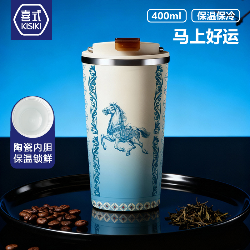 喜式陶瓷内胆保温杯咖啡杯-马上好运礼盒