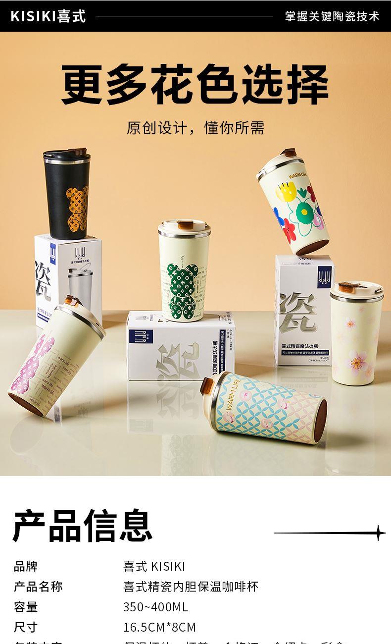 喜式陶瓷内胆提手咖啡杯-K100马上好运