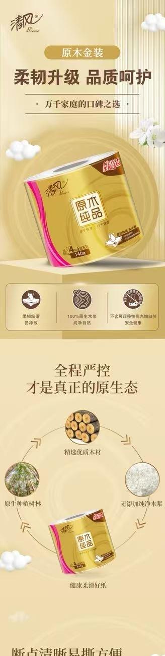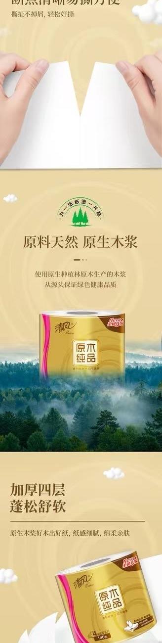 清风原木金装4层140克/卷*2提(20卷)筒卫生纸 清风原木金装4层140克/卷*2提(20卷)筒卫生纸