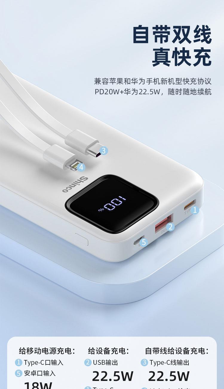 Shinco新科PD22.5W自带线移动电源GT-i1S Shinco新科PD22.5W自带线移动电源GT-i1S