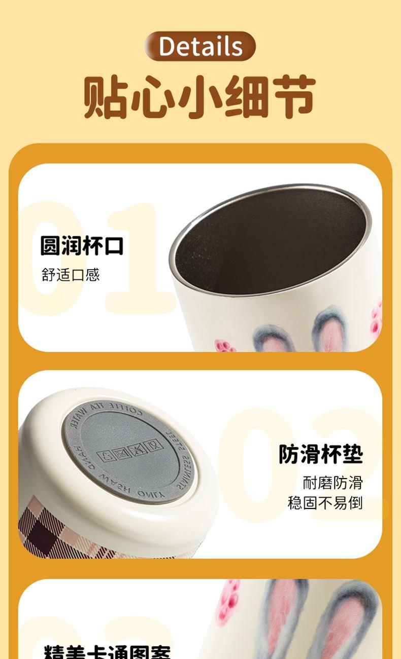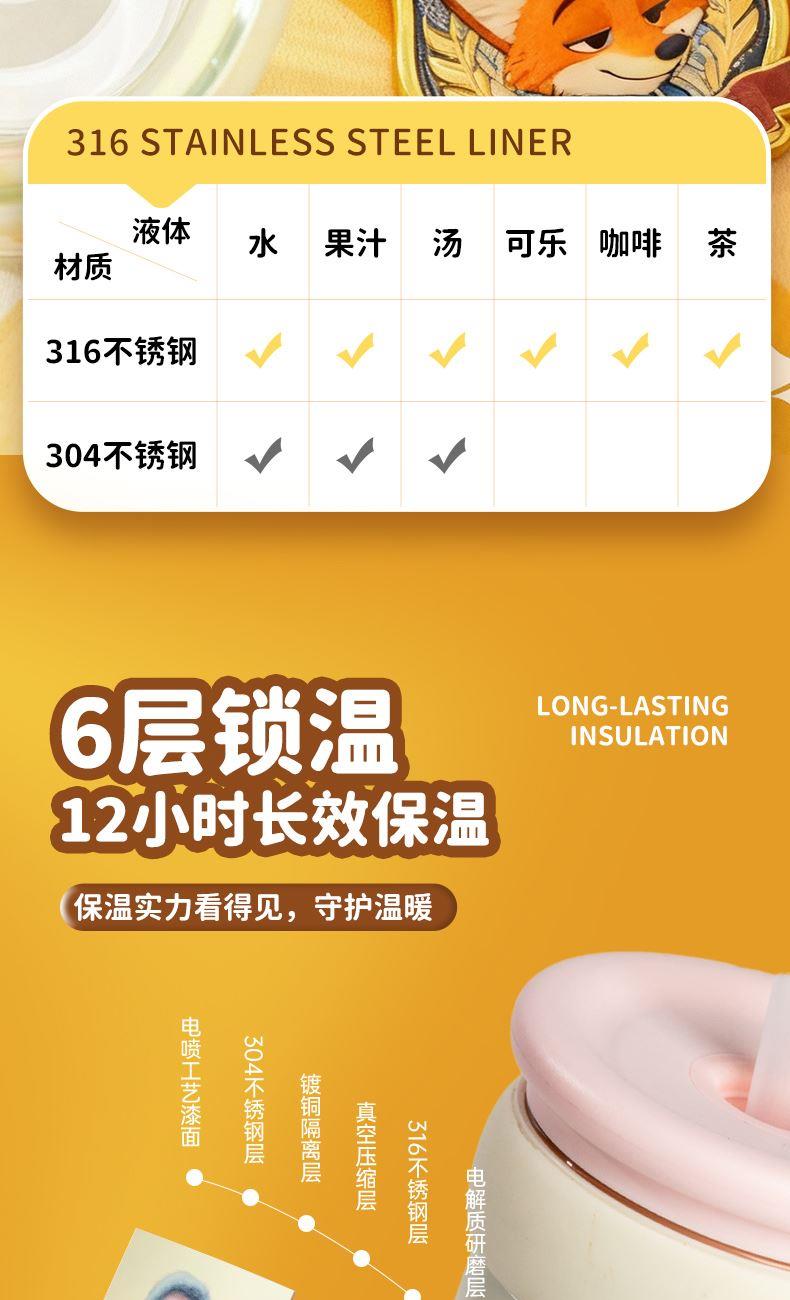 容量:530ML(不锈钢内胆)、400ML(玻璃内胆) 尺寸:8*8*24CM 材质:PP、硅橡胶 不锈钢杯身:316材质玻璃 内胆:高硼玻璃 外壳:304材质 卖点: ①一杯双倍快乐,玻璃内胆保温杯 ②一杯双胆,保温杯玻璃杯同时拥有 ③高硼玻璃,茶水分层装 ④316不锈钢入口倍感安心,优选食物接触用不锈钢材质 ⑤6层锁温,12小时长效护航 ⑥升级吸管,加料轻松嘬,安心材质,无异味,内置密封防漏圈 ⑦圆润杯口、防滑杯垫、精美图案
