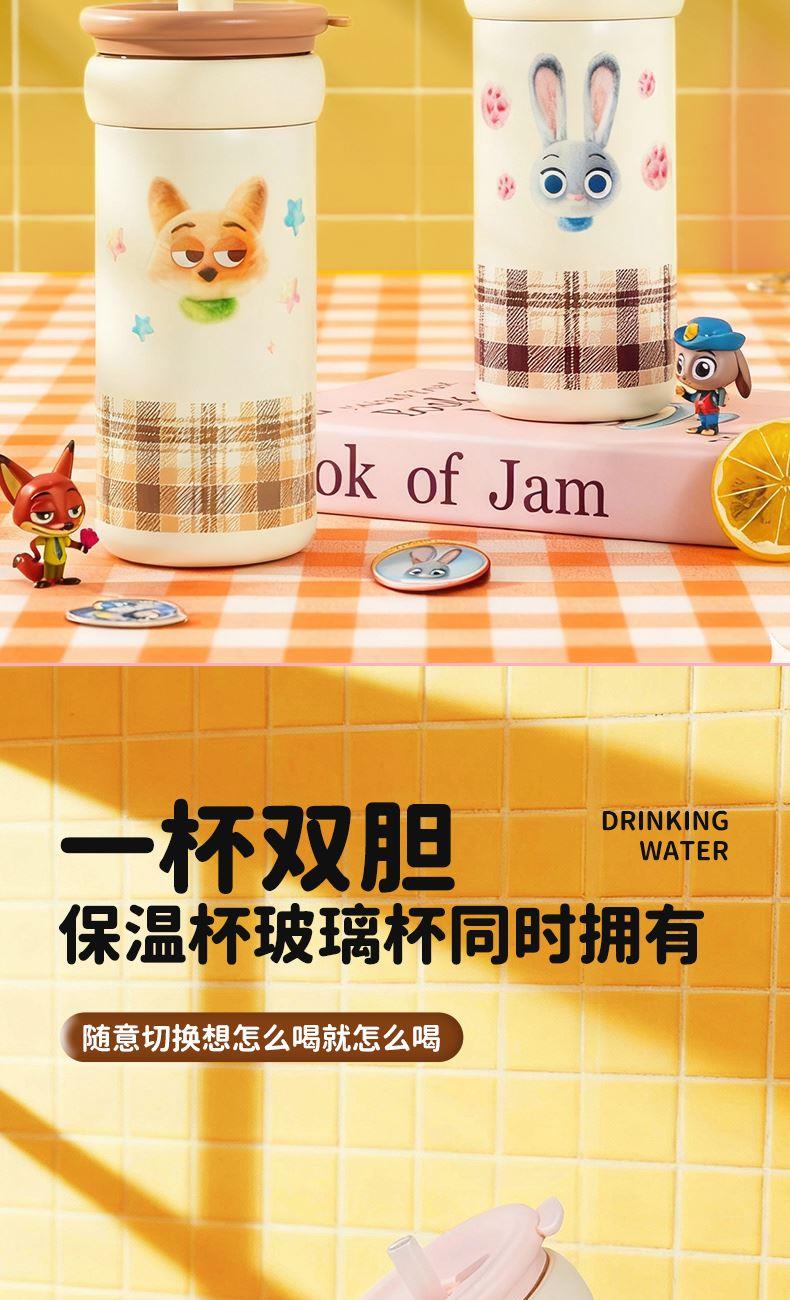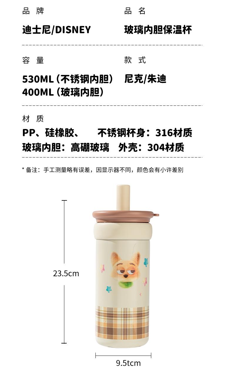 迪士尼玻璃内胆保温杯吸管杯咖啡杯530MLH15135