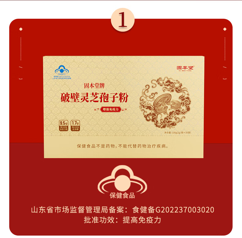 固本堂 固本堂破壁灵芝孢子粉礼盒100g 6973700380755 100g(2g/袋*50袋)