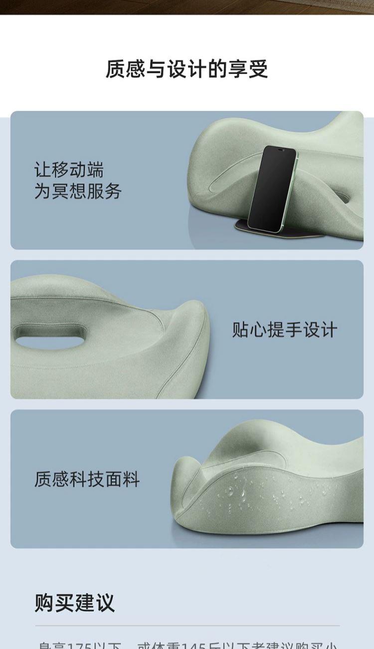 产品型号:ZMSE001-ALBU-L 产品颜色:静谧蓝 产品尺寸:665*640*220mm 外箱尺寸:680*655*240mm 产品规格:1PC 执行标准:GB/T 22843-2009 人体工学设计,手机支架,提手设计 贴合人机工体态设计 前挡后顶两分托 科学分区支撑 挡住外滑足部、托起弯曲腿部、支撑中立脊椎 贴心提手设计 质感科技面料