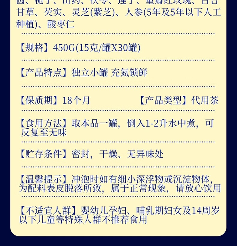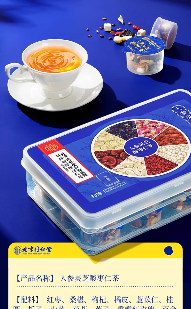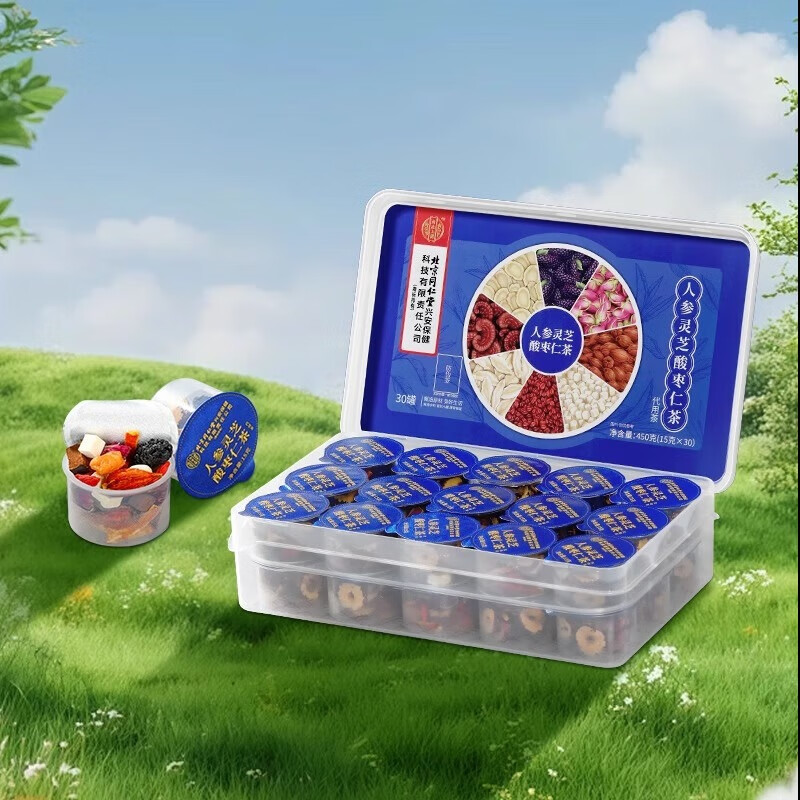北京同仁堂内廷上用人参灵芝酸枣仁茶450克(15克×30罐)