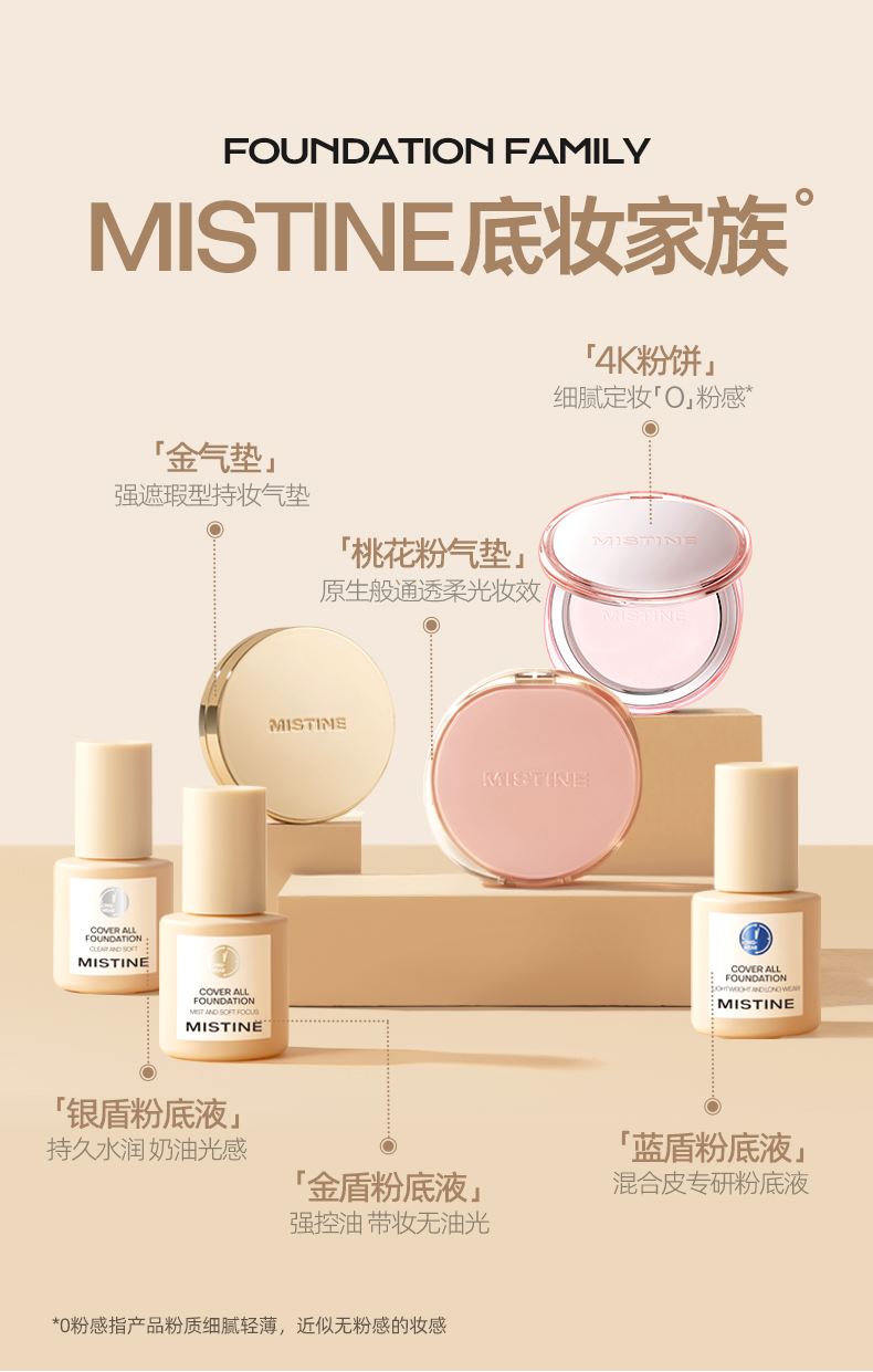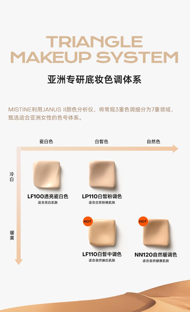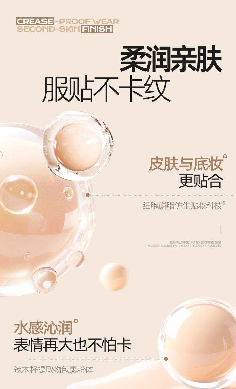 1、持妆PRO——长效贴肤更持妆,日落妆不落 水凝柔纱科技(三乙氧基辛基硅氧烷处理亲水气流粉体)亲水气流粉体经过柔纱,外衣处理,为肌肤带来水润感,上脸贴牢肌肤,柔软亲肤,底妆舒爽不掉线,妆随容动,透气不闷痘,保证肌肤呼吸 2、养肤PRO——保湿修护抗蓝光,贴妆更养肤 多重保湿、双重修护、抗蓝光,守护肌肤,底妆水润轻透不浮“燥” 护肤级保湿精粹9重玻尿酸、银耳子提取物、椰子果提取物、依克多因)——多重保湿成分,保湿不拔干,柔润不卡纹 双重活性修护精萃酵母发酵滤液、深海蓝藻蛋白——保持肌肤弹润,修护肌肤,有效抗老 聚繖岩蔷薇——抵御蓝光,强韧肌底,上妆不刺激,保持底妆鲜活亮泽 3、抗氧PRO——多重抗氧更透亮,天黑妆不黑 双重抗氧成分,虾青素、麦角硫因——避免底妆氧化暗沉,长时间带妆也不易暗沉发黄,深入肌底焕亮肌肤,呵护底妆不暗沉 4、轻透PRO——自然轻薄更亲肤,透气不闷痘 MOVING FILM动态透气盾(柔软树脂膜)——超柔软、耐摩擦、更透气,轻透服帖,如动态保护盾一般,根据肌肤动态调整自身状态,保持底妆舒爽不掉线,时刻守护底妆妆态。