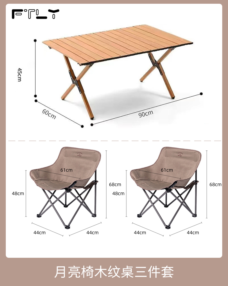 FTLY飞图乐月亮椅木纹蛋卷桌三件套ZDZY1801