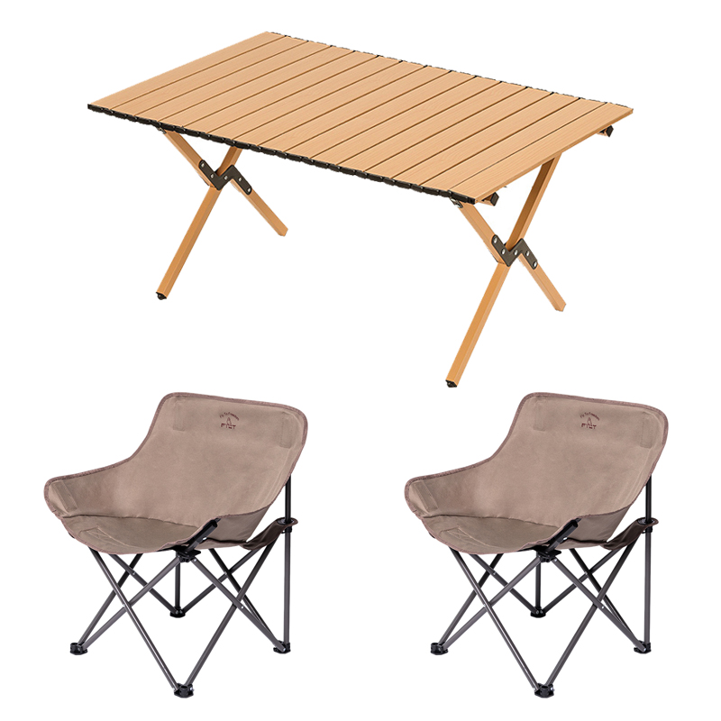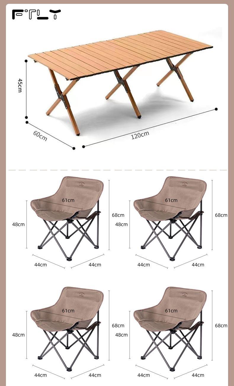 材质:600D双层牛津布 +镀锌合计钢管 商品颜色:茶松棕 商品规格:三件套(一桌两椅) 中桌尺寸:90*60*45cm 大桌尺寸:120*60*45cm 椅子尺寸:68*44*44cm 商品重量:7kg 1、交叉稳固碳钢蛋卷桌,稳固防水耐腐蚀; 2、配加宽舒适月亮椅,久坐不累; 3、一桌多椅,折叠收纳,不占空间 ; 4、高承重,高负荷,舒适享受; 5、轻奢感配色,贴近自然; 需要同款桌椅五件套(长桌120+椅子4把)联系我司业务