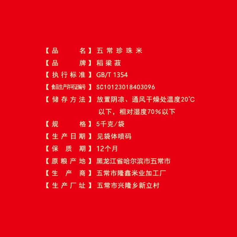 包装:真空袋装 执行标准:GB/T 1354 保质期:12个月 质量等级:优质一级 产地:黑龙江五常市 产品尺寸:300mm*240mm*80mm 推荐理由: 1、PICC人保承保产品。 2、稻田24小时实时监控。 3、智慧农业系统。 4、当月现磨新米发货。 5、独立溯源码。 6、双层真空保鲜。