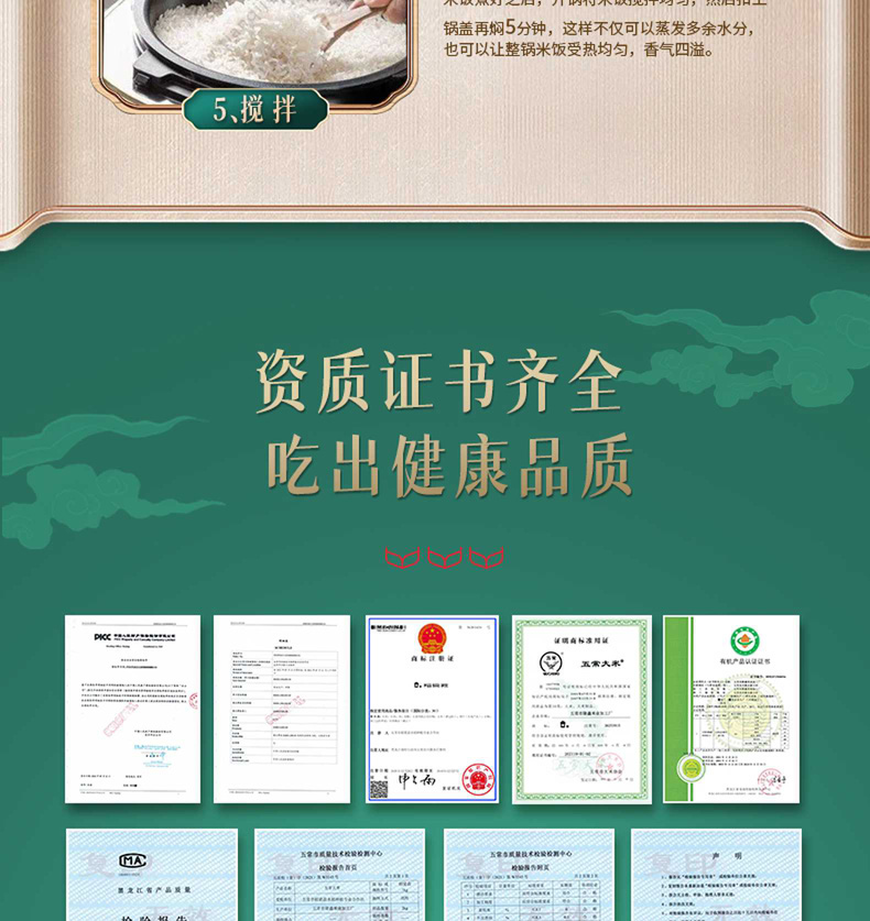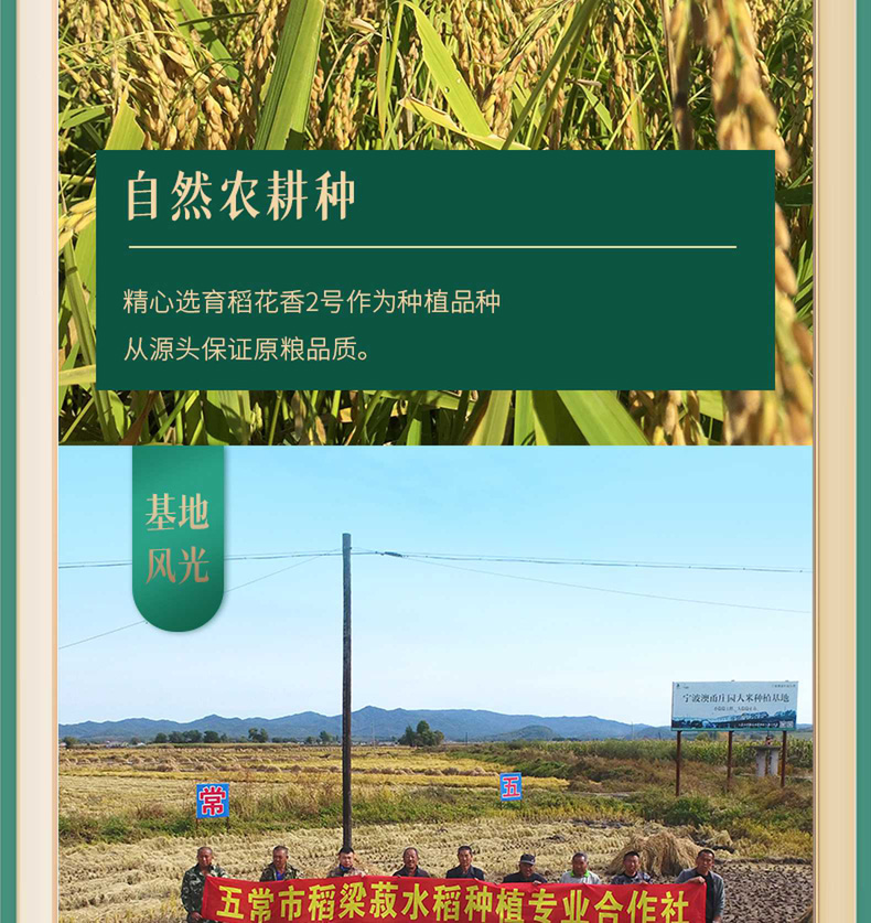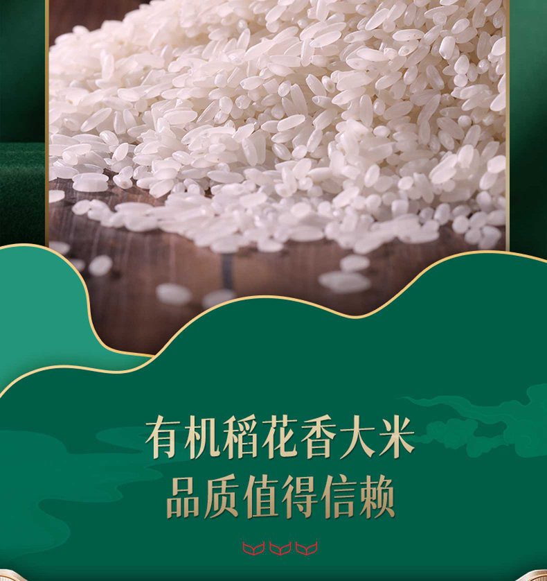 包装:真空袋装 执行标准:GB/T 19266 保质期:6个月质量等级:优质一级 产地:黑龙江五常市 产品尺寸:300mm*240mm*80mm 推荐理由: 1、五常有机稻花香2号米。 2、PICC人保承保产品。 3、稻田24小时实时监控。 4、智慧农业系统。 5、当月现磨新米发货。 6、独立溯源码。 7、双层真空保鲜。