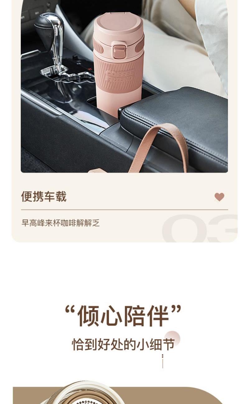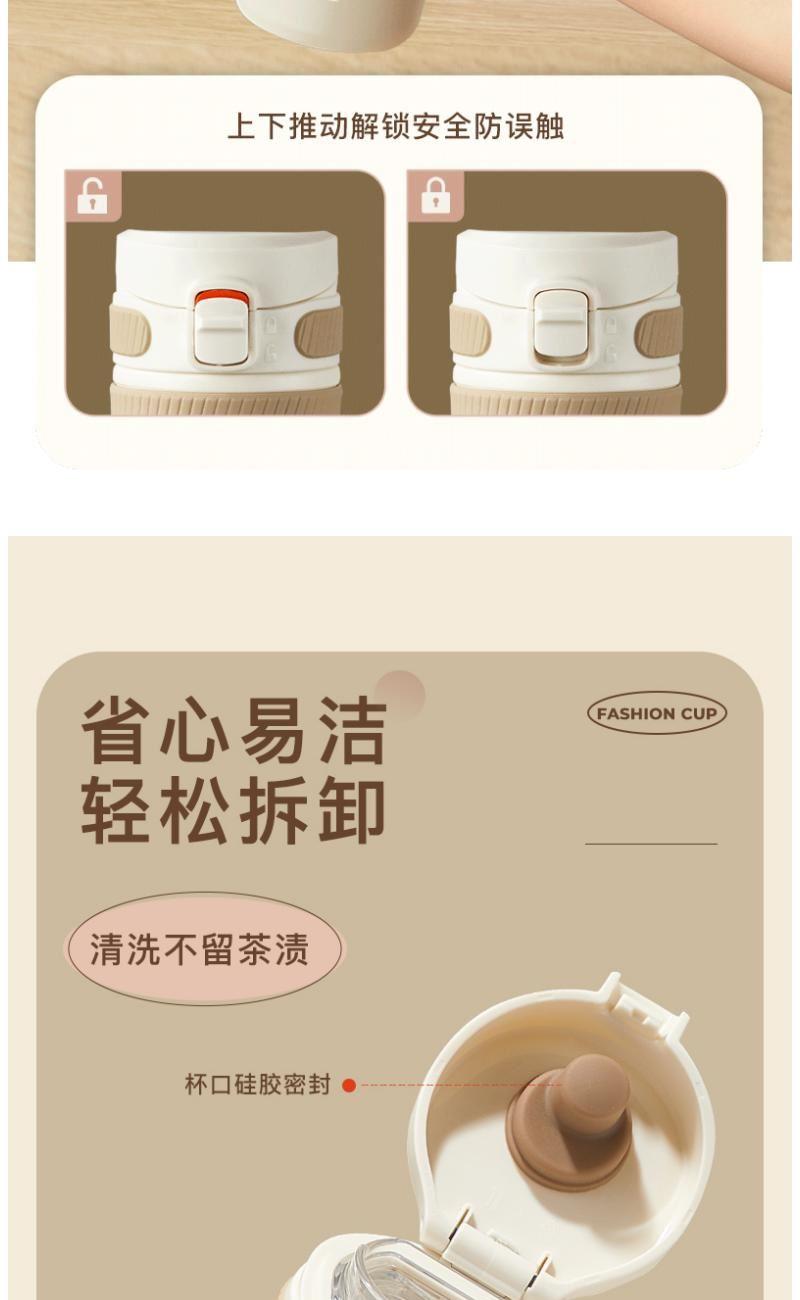 2、一键弹盖按钮 U型圆润杯口设计,贴合双唇的构造,每尝一口饮品都保留丝滑的感觉。