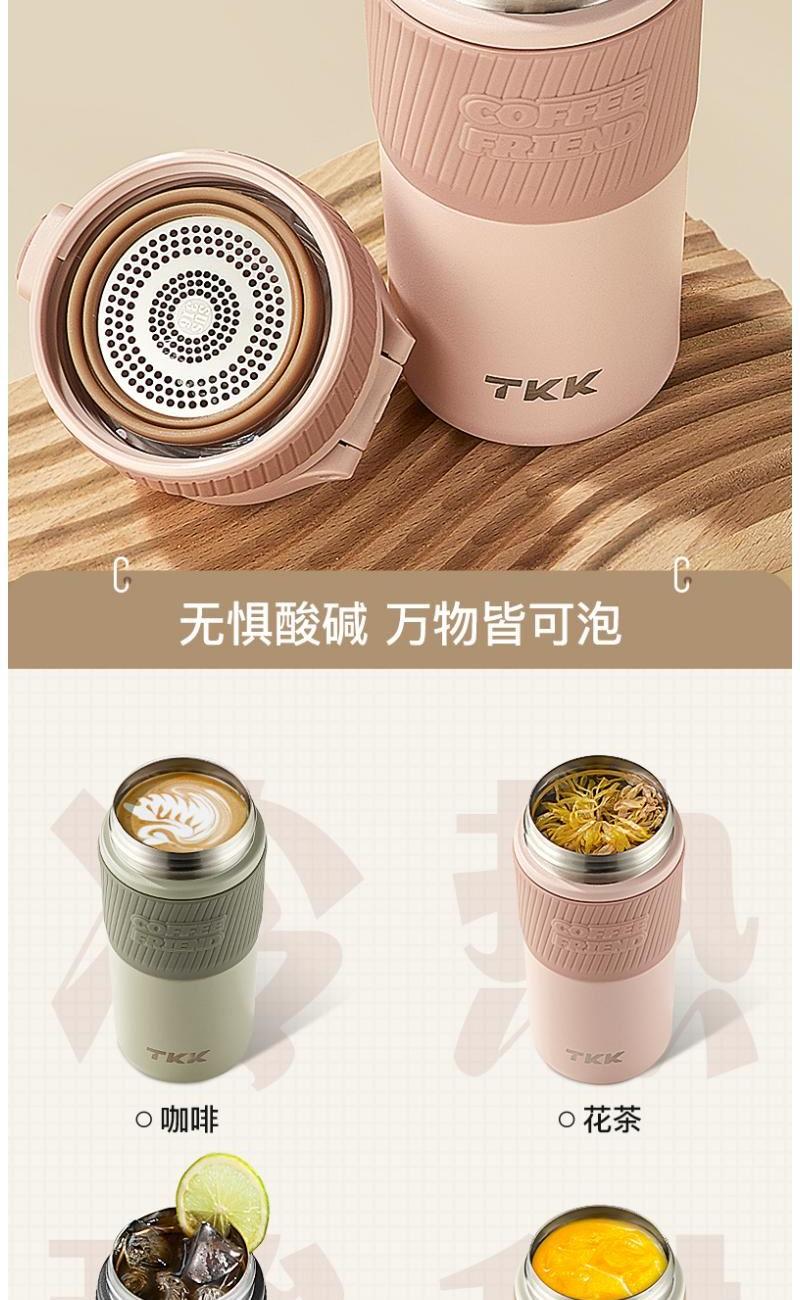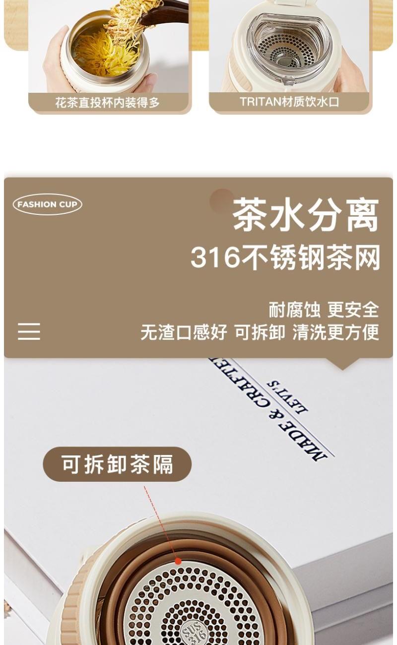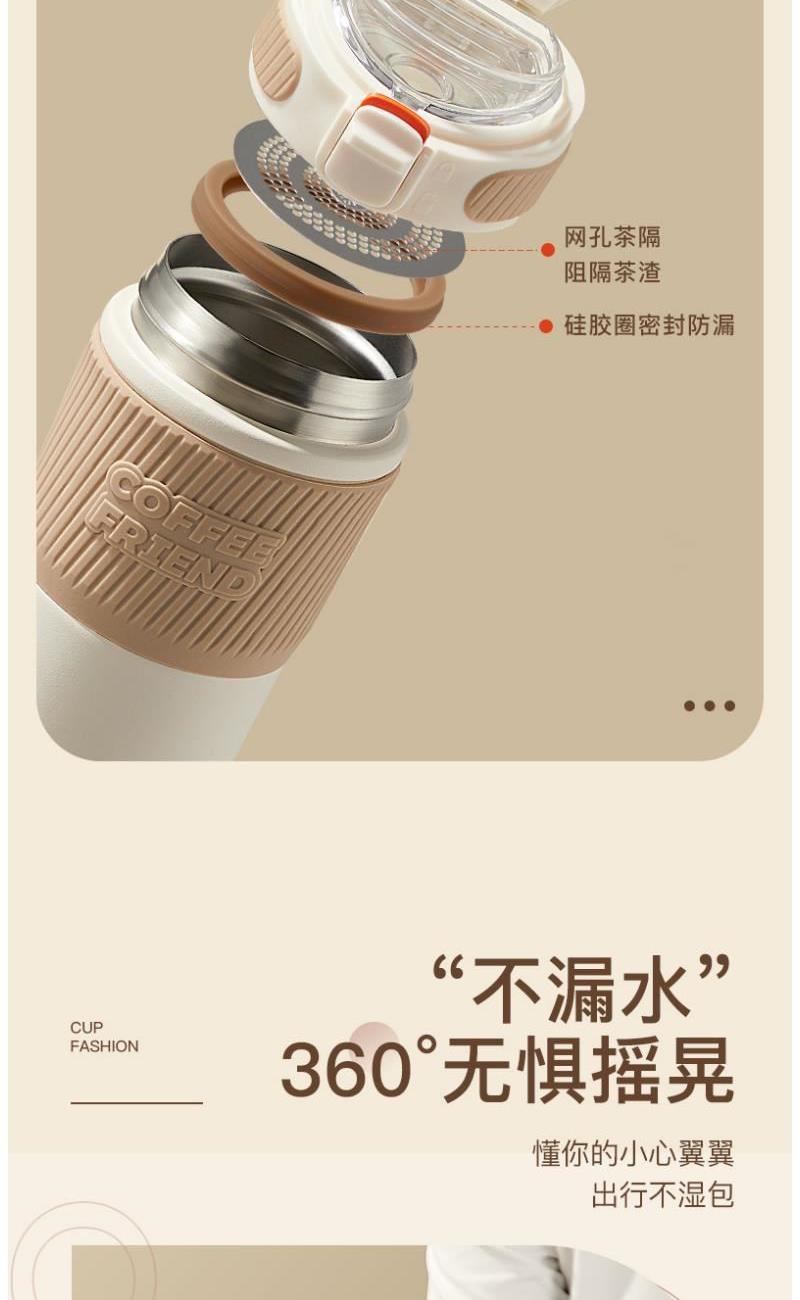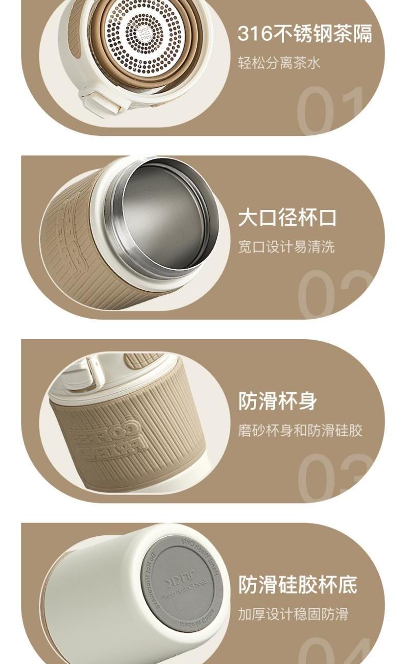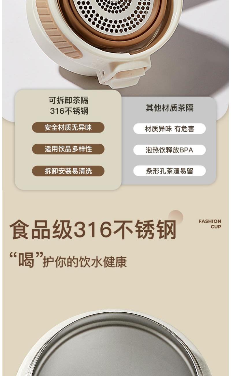 4、食品级的硅胶材质,密封圈防漏。316 不锈钢茶隔,有效隔除渣叶的流出,喝的更顺畅。