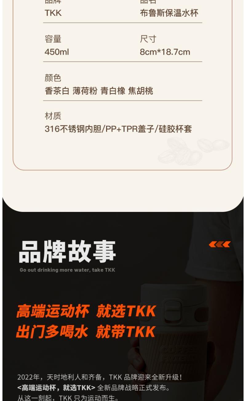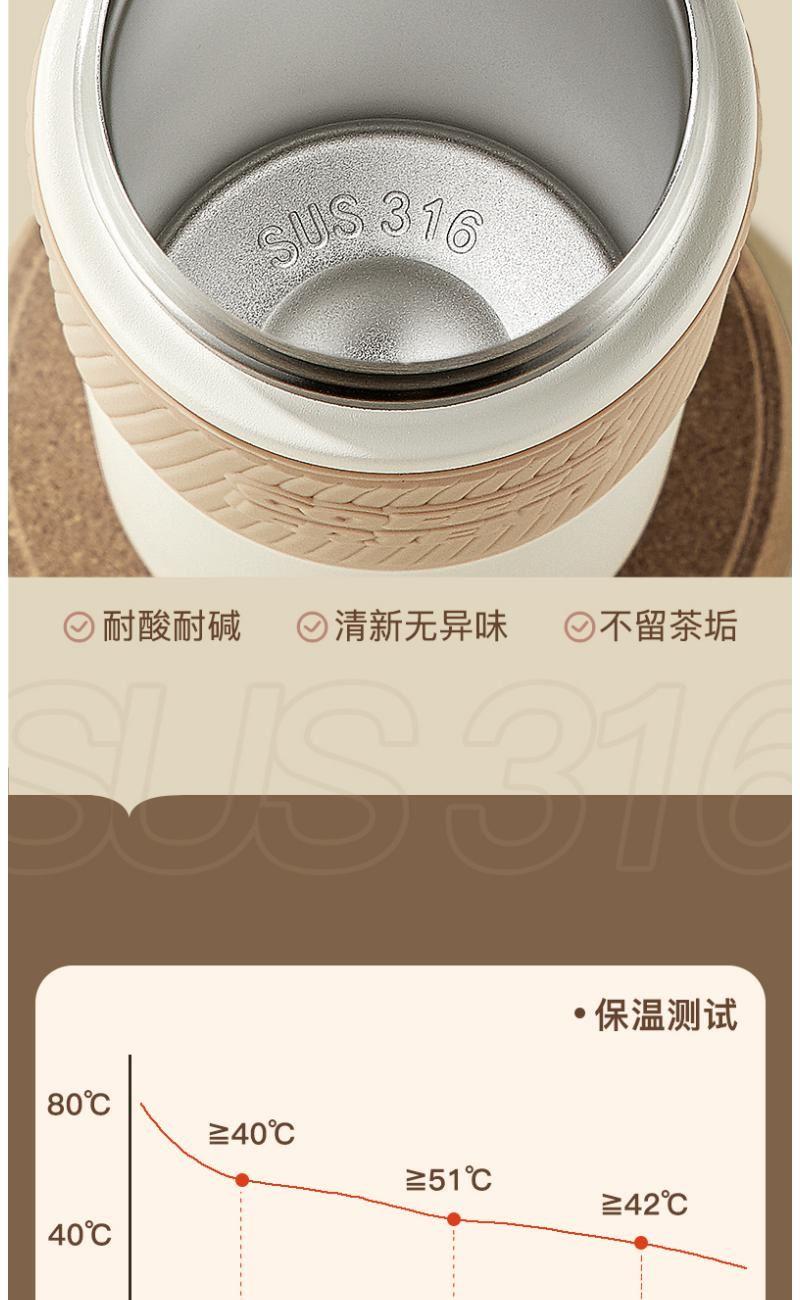 5、硅胶防滑垫,保护杯底不受正面碰撞,让杯体放的更稳 防滑。硅胶弹性杯套,保护杯身,防烫防滑,增加了手我的舒适性。