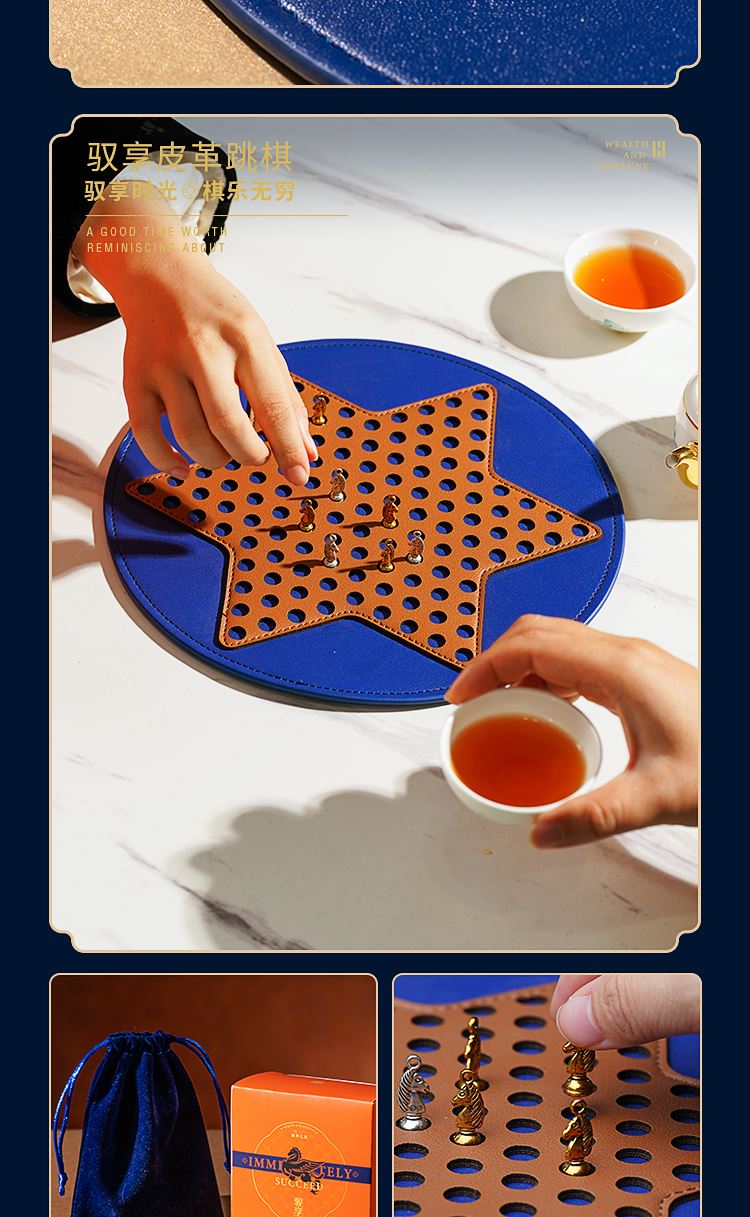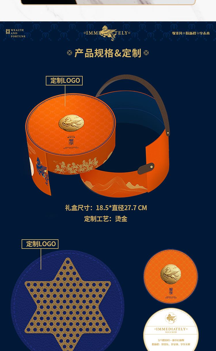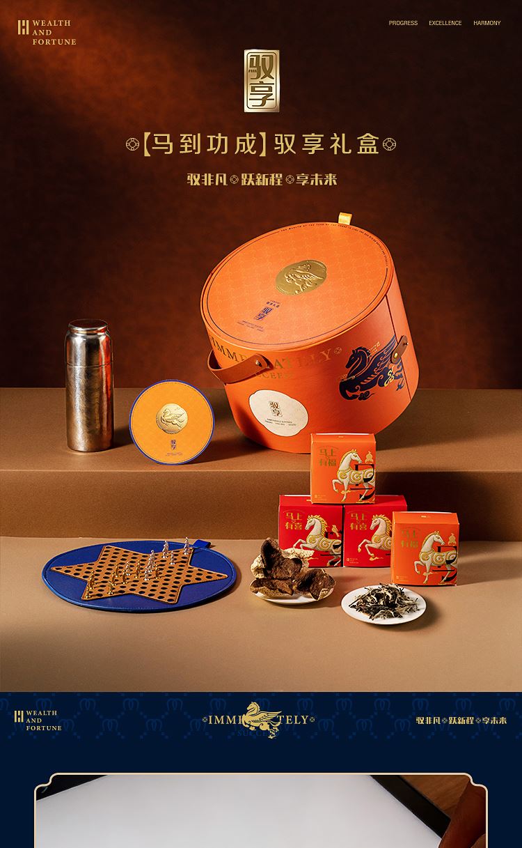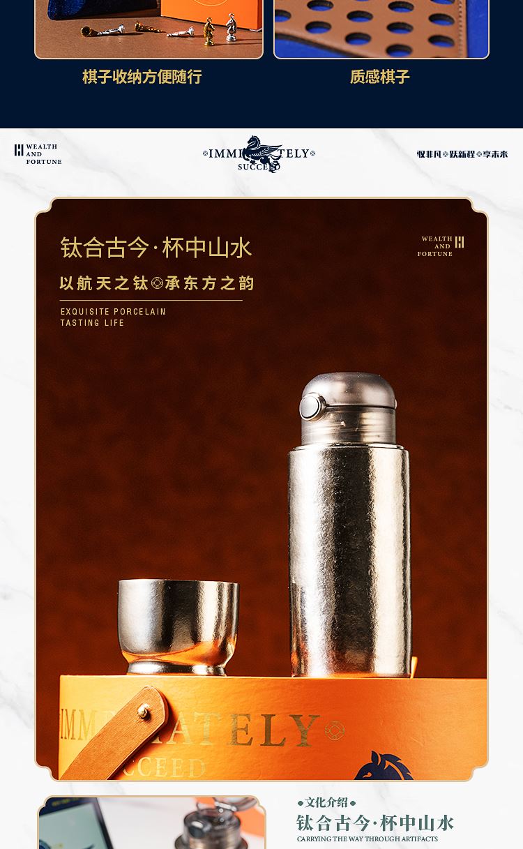 礼品配置清单: 双层主题礼盒、团圆皮革棋盘、马头棋子、磁吸纯钛保温杯*1、老白茶*2盒、新会陈皮*2盒