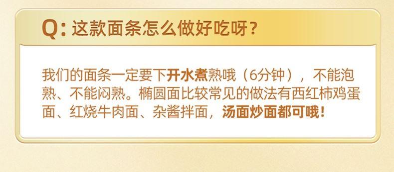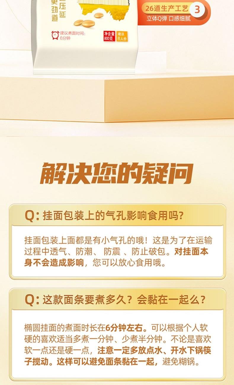 产品规格: 椭圆挂面 800g*2包 选用澳洲进口小麦粉 3蒸3醒,九道压延 中高温慢速烘烤, 立体Q弹柔滑