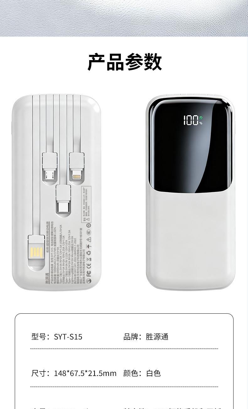 胜源通22.5W自带四线超级快充移动电源SYT-S15
