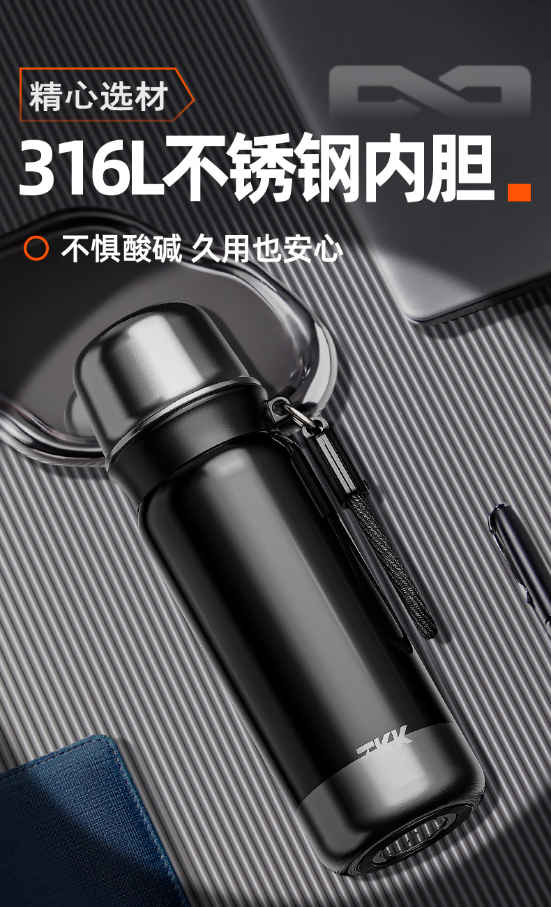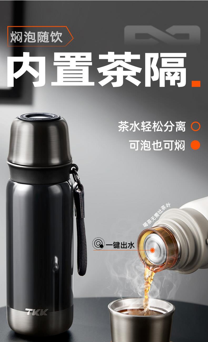 商品容量:500mL 杯身材质:316不锈钢 商品净重:407g 商品尺寸:7.3X23.8cm 1、316L不锈钢材质 、茶水分离、24H长效保温保冷 、一拎就走 、密封不漏 、按 键 出 水 内置茶隔 2、大口径水杯杯口,轻松倒水品茶内置316L不锈钢茶隔,更安全健康