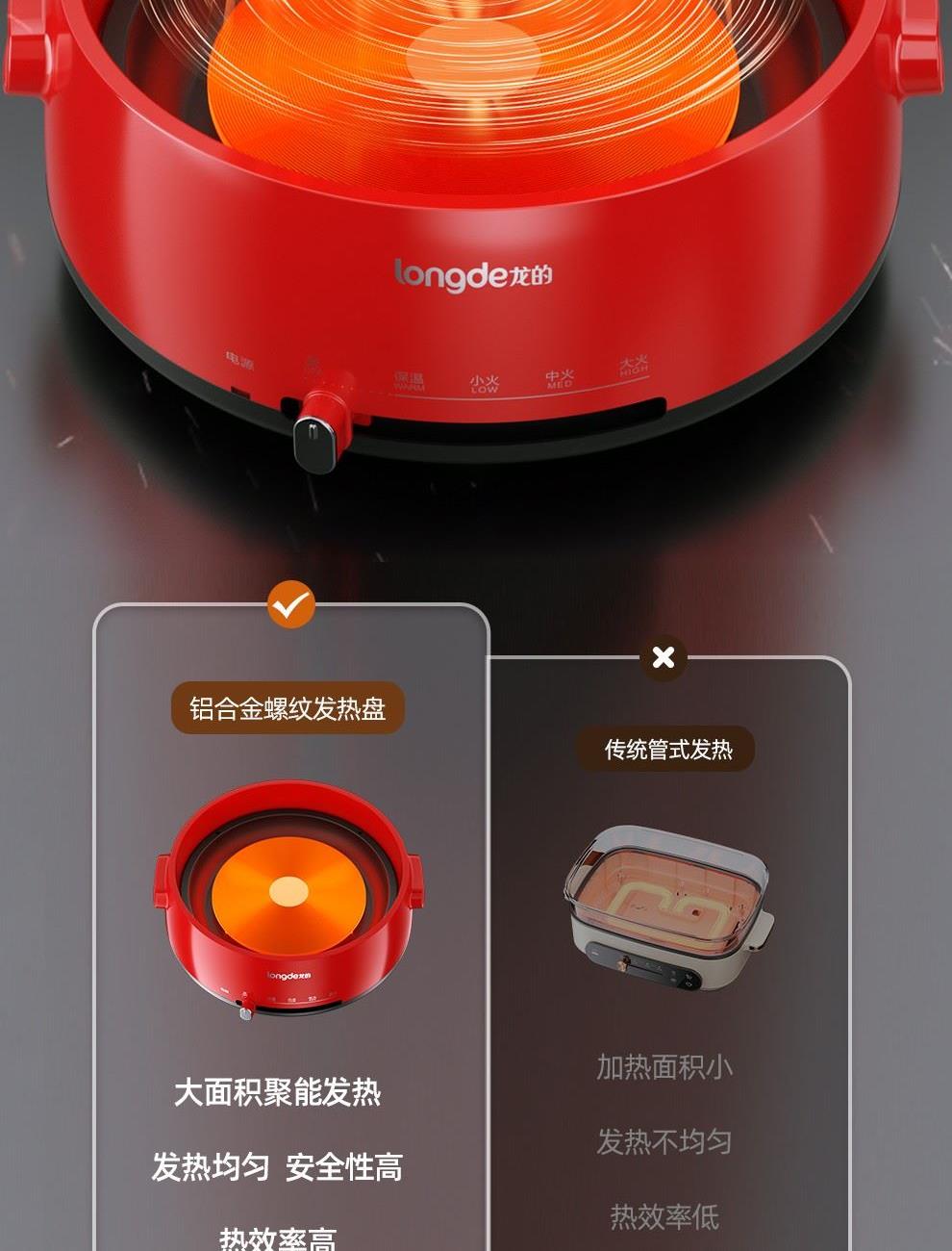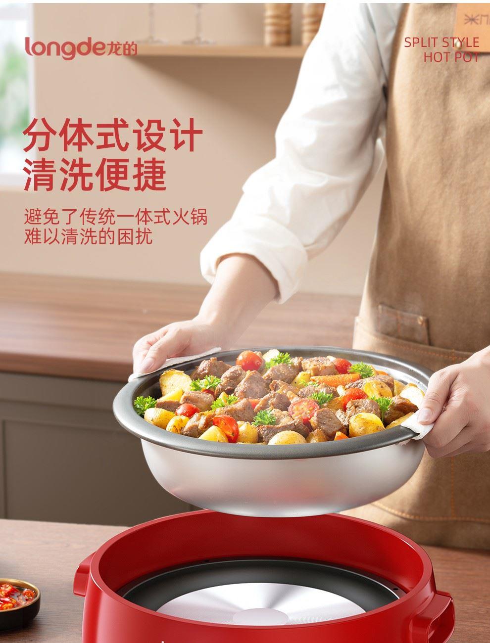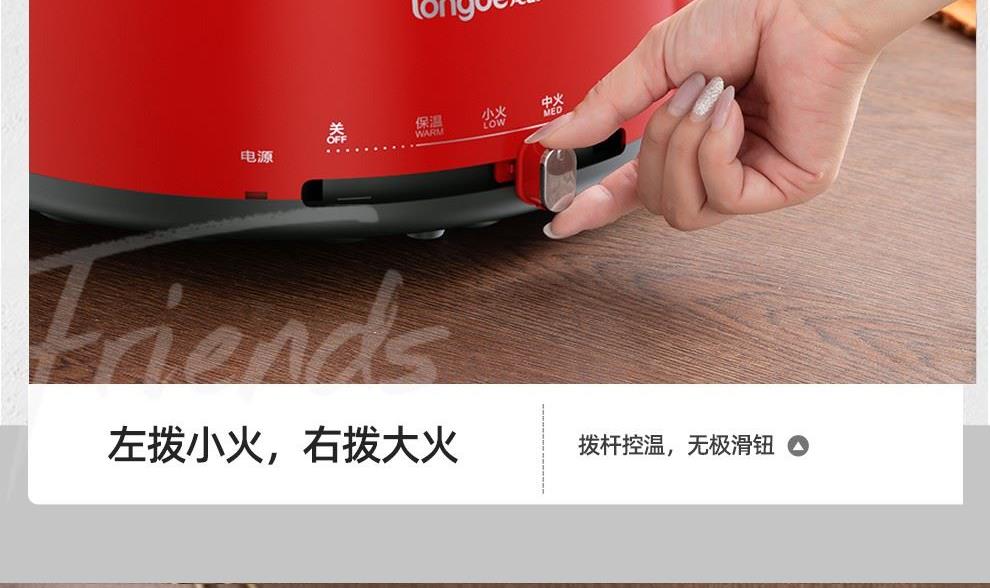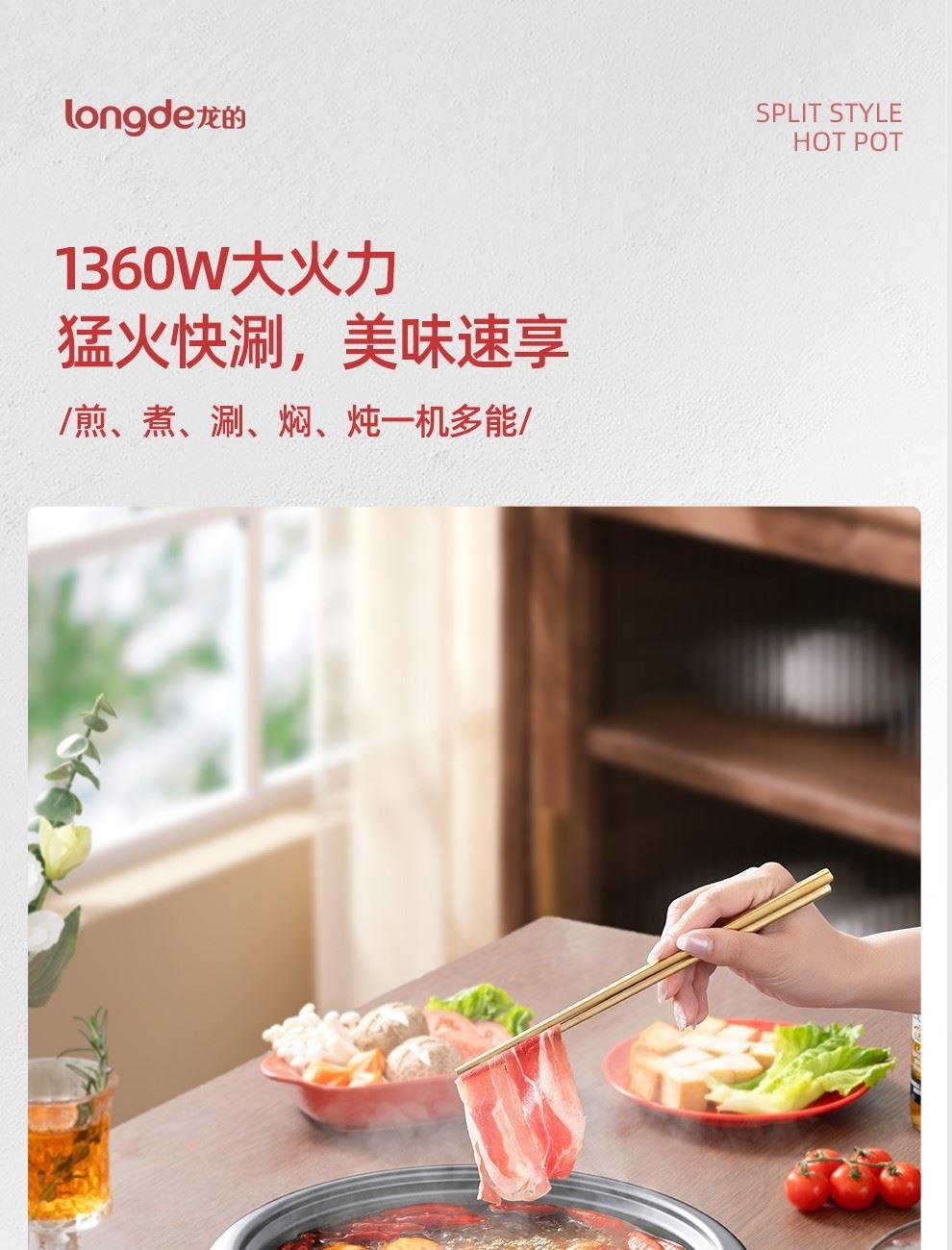 额定功率:1360W 产品容量:4.0L 额定电压:220V~ 产品频率:50Hz 产品净重:2.5kg 产品毛重:2.8kg 整箱重量:18.0kg 分体不粘不粘分体深锅,导热快,易清洗 铝合金发热盘螺纹导热快,发热均匀 可视烹饪不锈钢包边耐高温玻璃上盖 大功率无极调无极温控,调和不同需求
