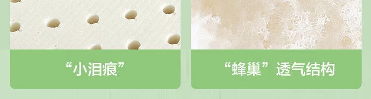 规格:40*60cm 面料:针织棉+网纱 填充:泰国进口乳胶 执行标准:GB/T22843-2009 安全类别:GB18401-2010 B类 1.乳胶是一种天然材质,其原液是直接从橡胶树皮中滴落下来的乳胶汁物理发泡加工一次成型,有天然乳香气息,含量高达90%以上乳胶成分,多纬蜂窝状气孔,较其他枕芯更为舒适,快速散发人体睡眠中余热和湿气。 2.枕头高弹力,贴合人体脊椎生长曲度,仰睡侧睡都可以,给您更好的承托力