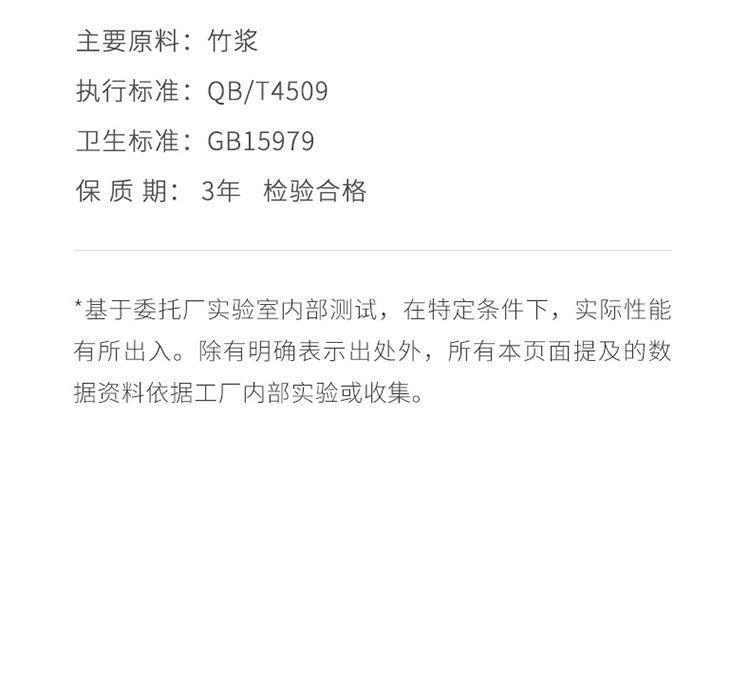 产品货号:12345 纸面规格:210*210mm(4层/抽) 产品毛重:430g 单包规格:72*53*24mm(8片/包) 单组规格:150*160*72mm(18包/组) 主要原料:原生竹浆 保 质 期:3年