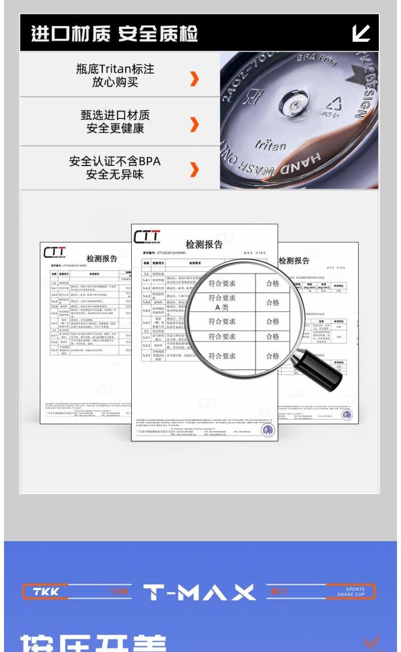 1.美国伊斯曼(tritan)公司直供材料tritan材质耐高温耐摔通透性高;进口tritan材料奶瓶级材质,可装热水,放心饮用。