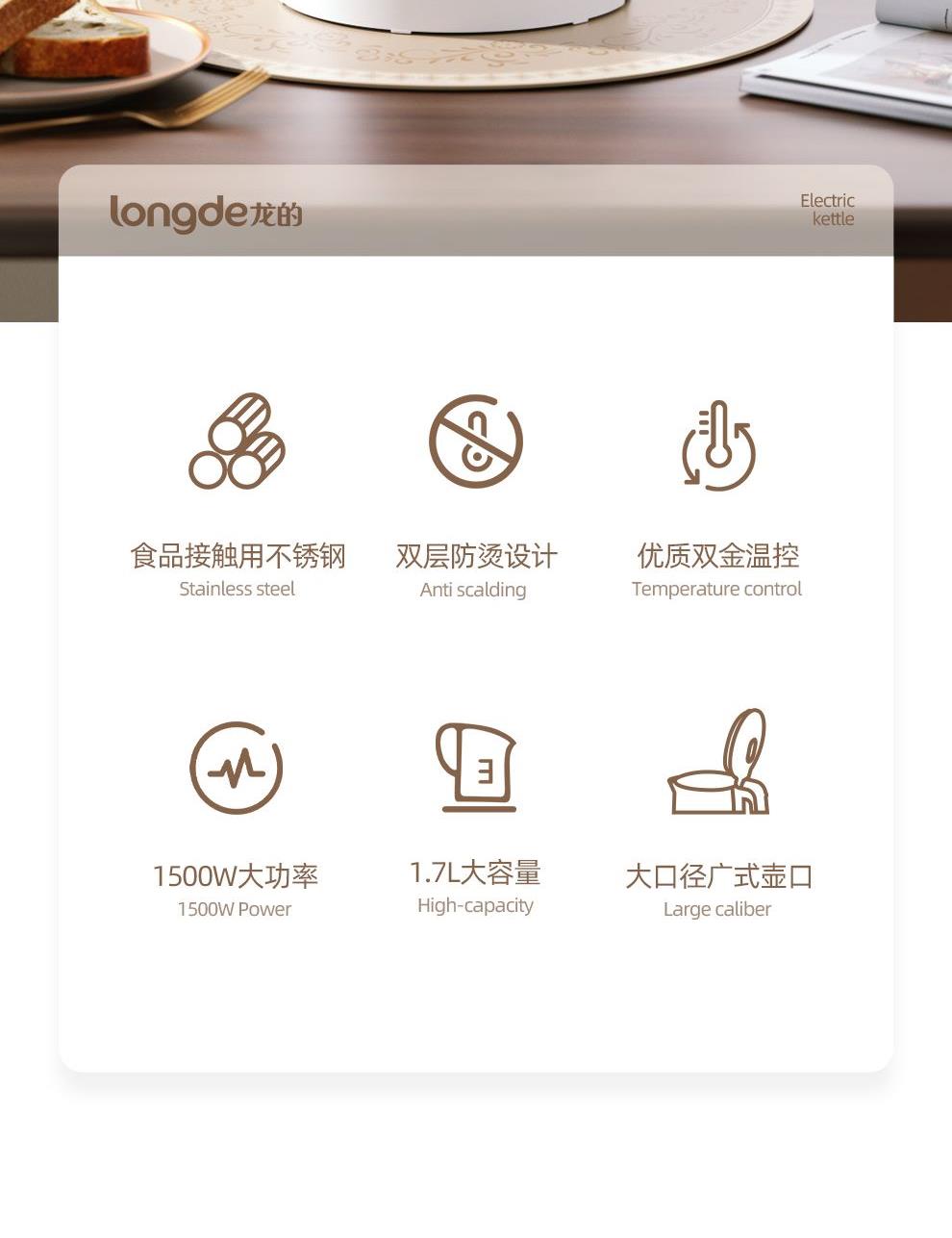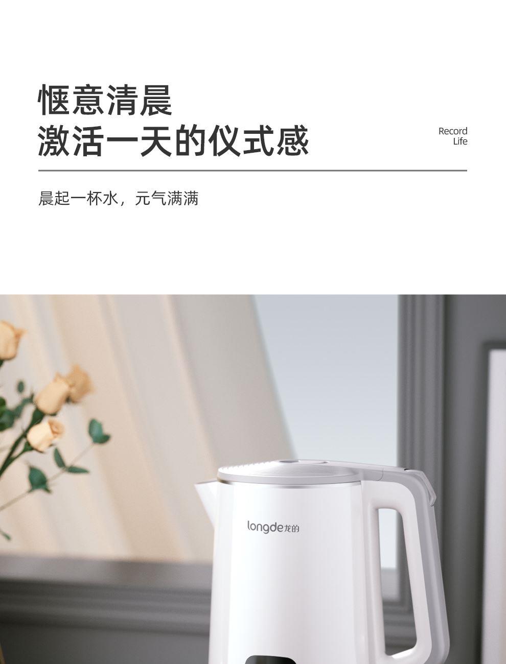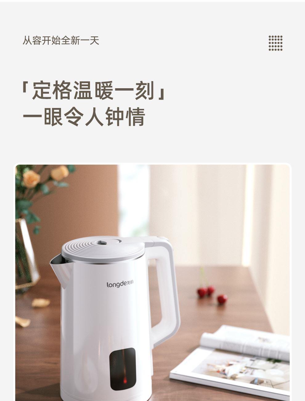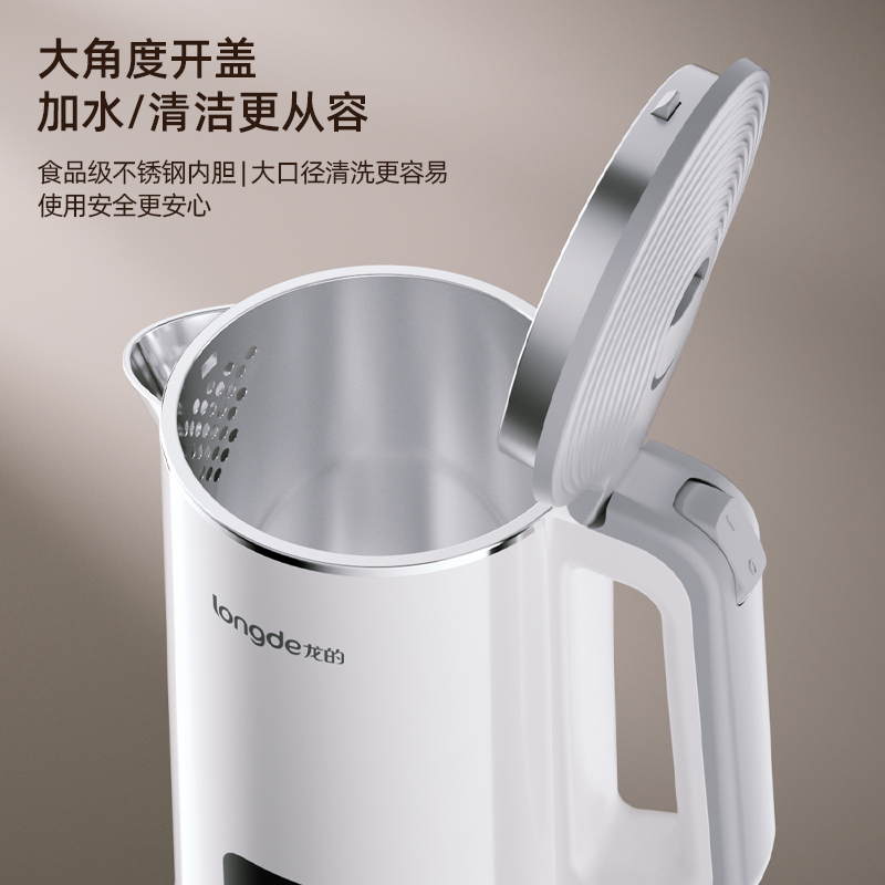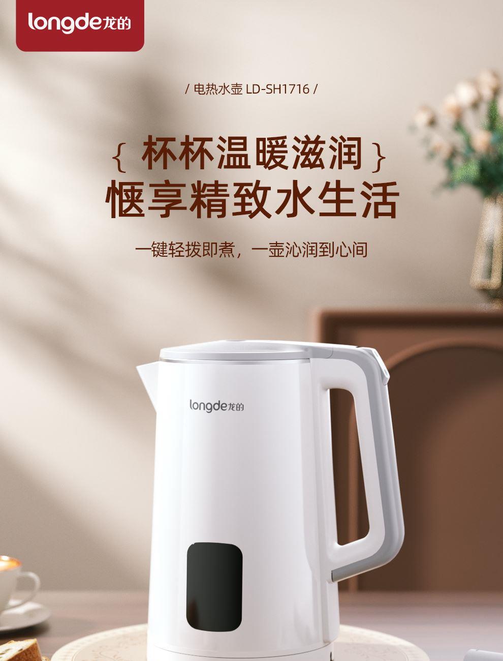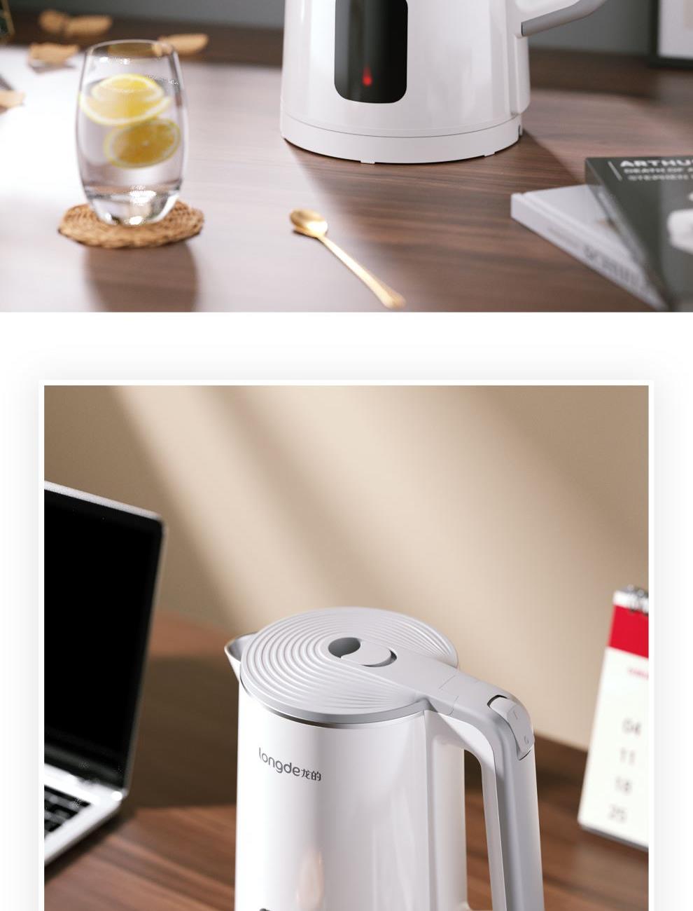 额定功率:1500W 产品容量:1.7L 额定电压:220V~ 产品频率:50Hz 产品净重:0.9kg 产品毛重:1.1kg 整箱重量:18.5kg 双层防烫,食品级不锈钢内胆 拉式开盖,不甩水安全方便 大口径出水烧水、出水顺畅不滴漏 双金温控优质温控器,干烧保护