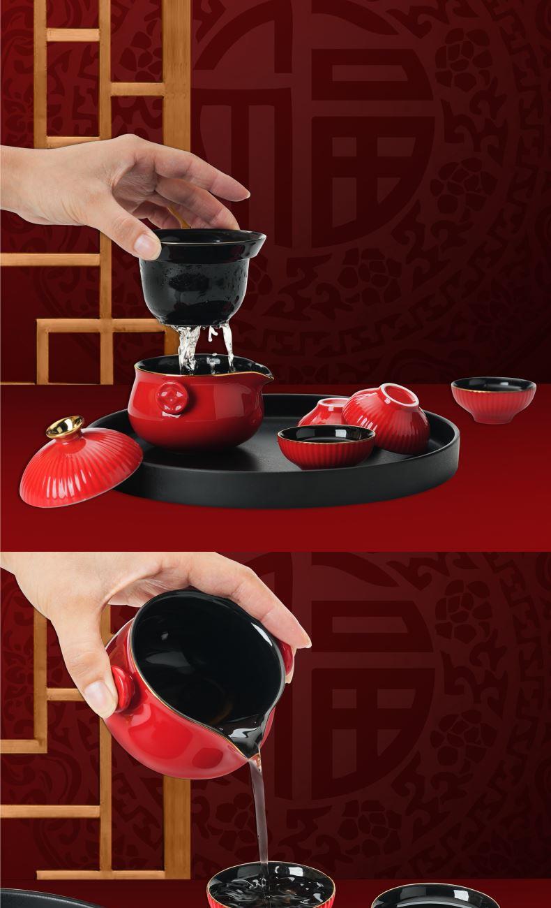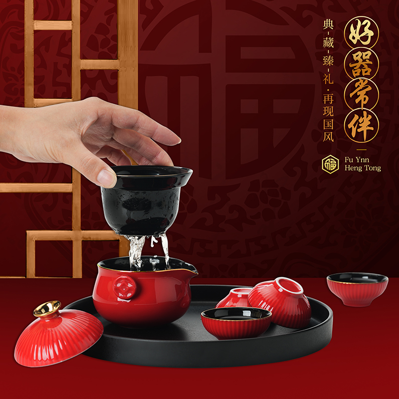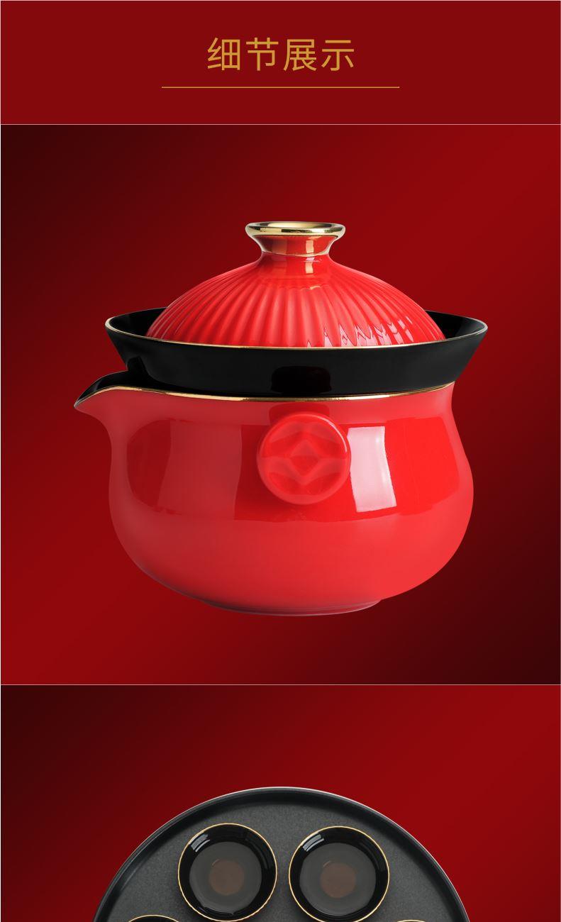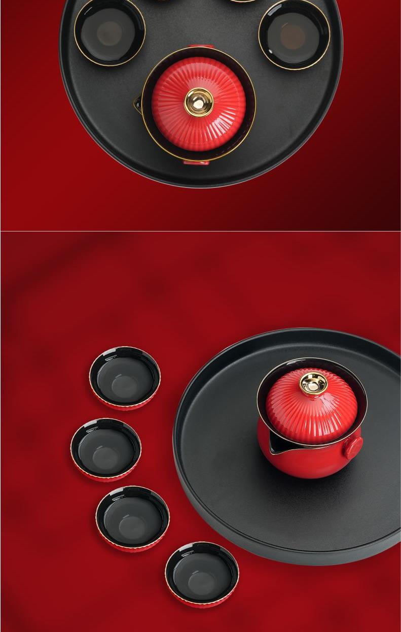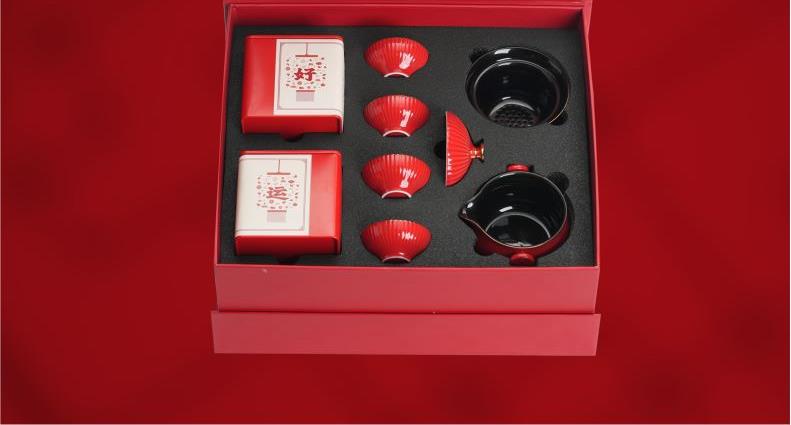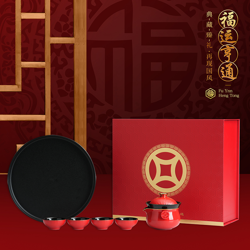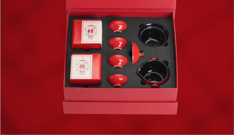 包装规格:32*27.5*13.5cm 定制:产品包装均可定制logo 材质:高白瓷 颜色:故宫红 组件:一壶四杯+茶盘+茶叶+精品礼盒