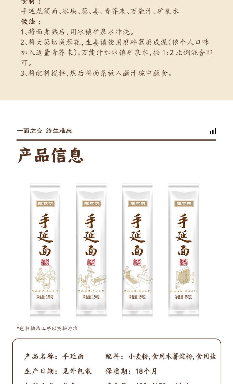 产品规格: 圆面1.5mm 150g*4包 共600g 1、二十道古法,六醒六抻更弹韧; 2、多熟成慢发酵,入味易熟好吸收 3、甄选进口澳麦麦源,口感弹韧,丝滑如稠 4、科学加持传统工艺,严格质控,美味安心享用