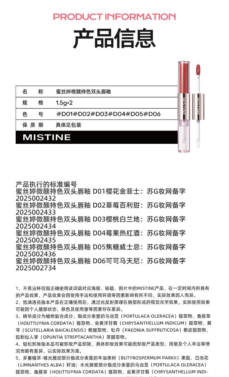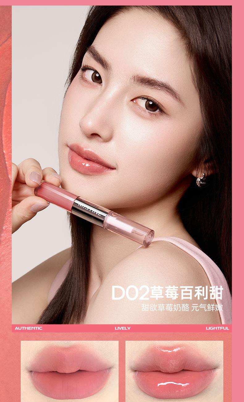 蜜丝婷微醺持色双头唇釉D02草莓百利甜