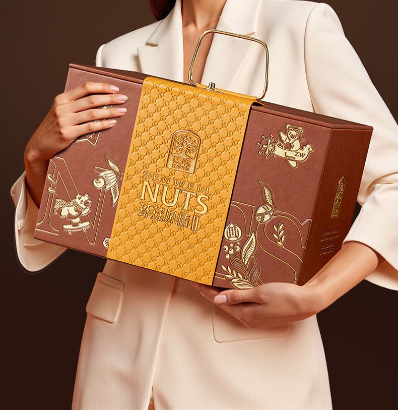 大容量手提箱设计,搭配烫金皮革工艺,缀以抽象艺术肌理,目之所及皆显贵;净含量:2150g,内含6种坚果、6种果干,欧式风情,奢华伴手礼,送礼更体面。